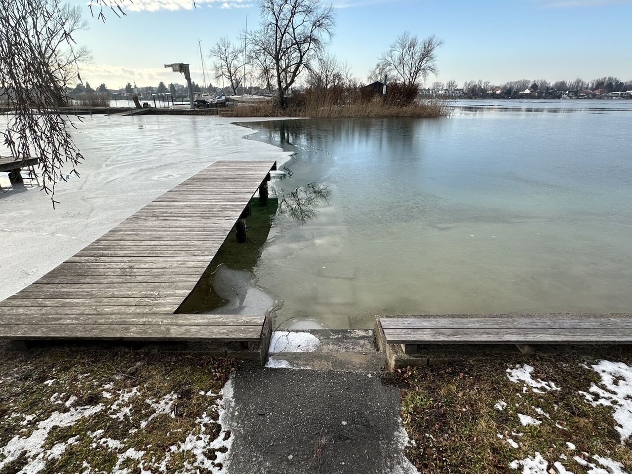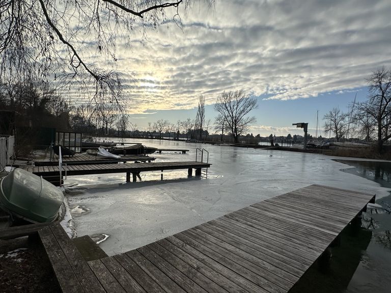 Zum Verkauf gelangt eine seltene Gelegenheit am Neufelder See: eine Uferparzelle mit direktem Wasserzugang und privatem Badesteg beim Yachtclub.