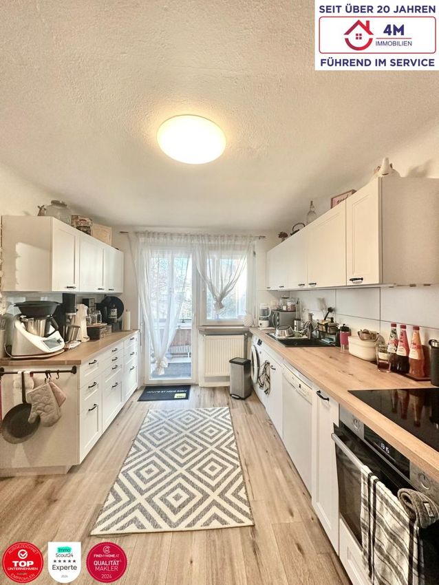 Die Küche ist mit hochwertigen Geräten ausgestattet und bietet ausreichend Platz zum Kochen und Essen. Zusätzlich verfügt der Küchenbereich über eine praktische Speisekammer für extra Stauraum.