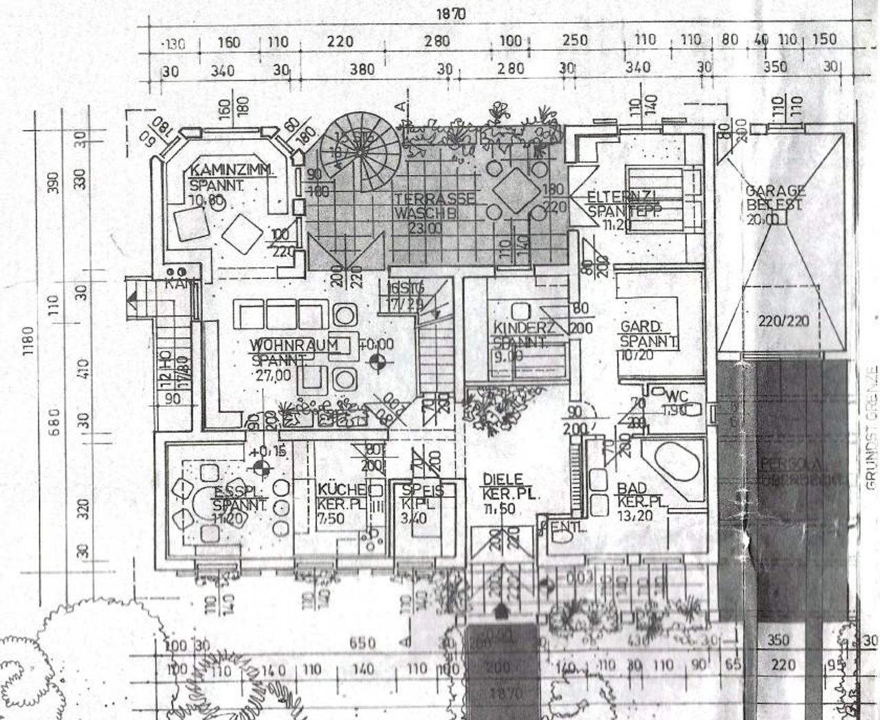 Das Grundstück erstreckt sich über 714m² und teilt sich auf in