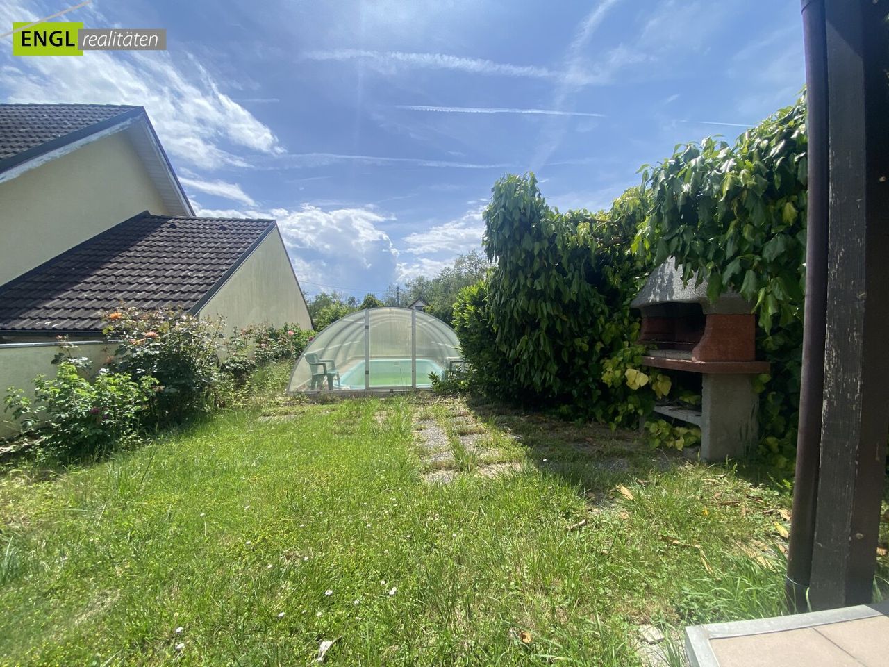 Am Grund befindet sich ein Schwimmbecken, mehrere Gartenhäuser und ein Carport. Gartengestaltung und der Anbau von Obst und Gemüse usw. ist jederzeit möglich.