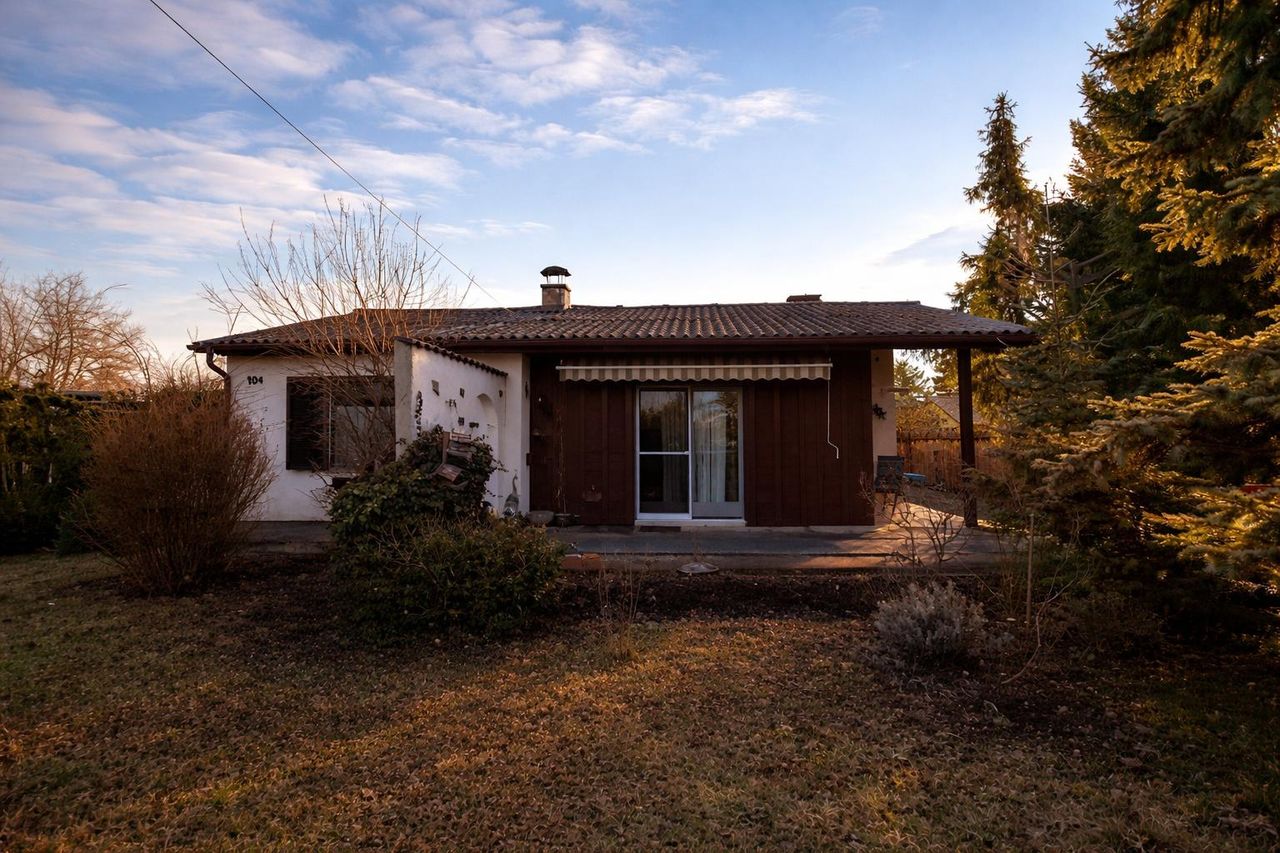 Zum Verkauf kommt dieses gemütliche Einfamilienhaus in Ruhelage mit ca. 92 m² Wohnfläche zzgl. 2 Terrassen auf einem 660m² Mietgrundstück. Die Mietbedingungen dürfen als optimal angesehen werden, die Mietkosten für das Grundstück betragen nur etwa 220 €/Monat und der derzeitige Vertrag läuft bis 12/2040. Vermieterin ist die Gemeinde Steinbrunn die bisher die Verträge immer wieder um 20 Jahre verlängert hat. Eine Hauptwohnsitzmeldung ist hier gestattet.