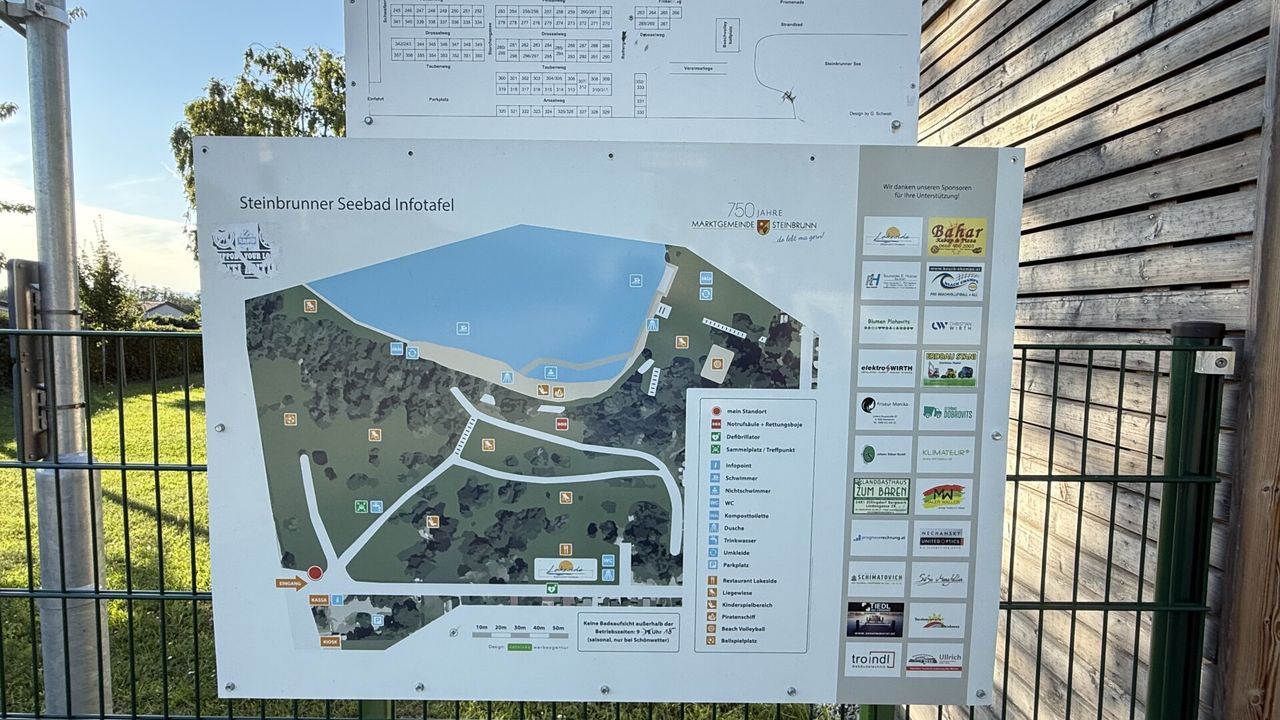 Im Ort: Der Steinbrunner See ist das Herzstück des Freizeitangebots. Mit einem Strandbad, Seerestaurant, Beachvolleyballplätzen und Spielplätzen bietet er ideale Bedingungen zur Erholung und ist zu Fuß in 3 Minuten erreichbar.