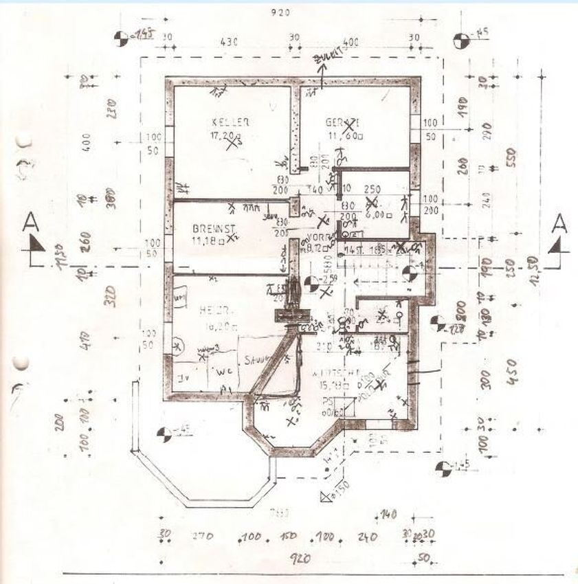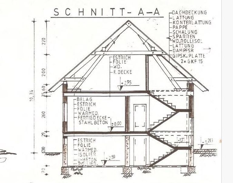 Das Haus ist auf drei Ebenen gegliedert: Kellergeschoss, Erdgeschoss, Oberes Geschoss (Dachgeschoss). Die Zimmer sind alle sehr gut geschnitten und zentral begehbar.