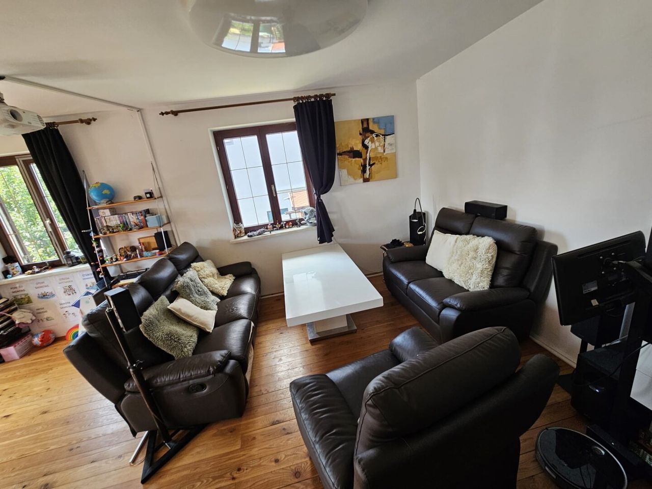 Die Wohn- und Schlafräume sind sauber mit Parkettböden / Dielen und die Sanitärräume sauber verfließt.