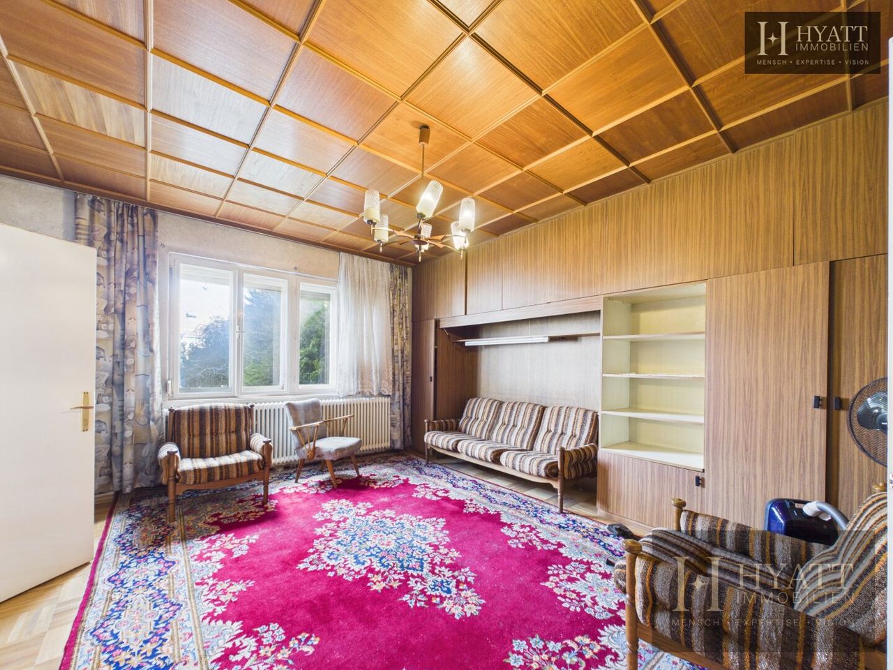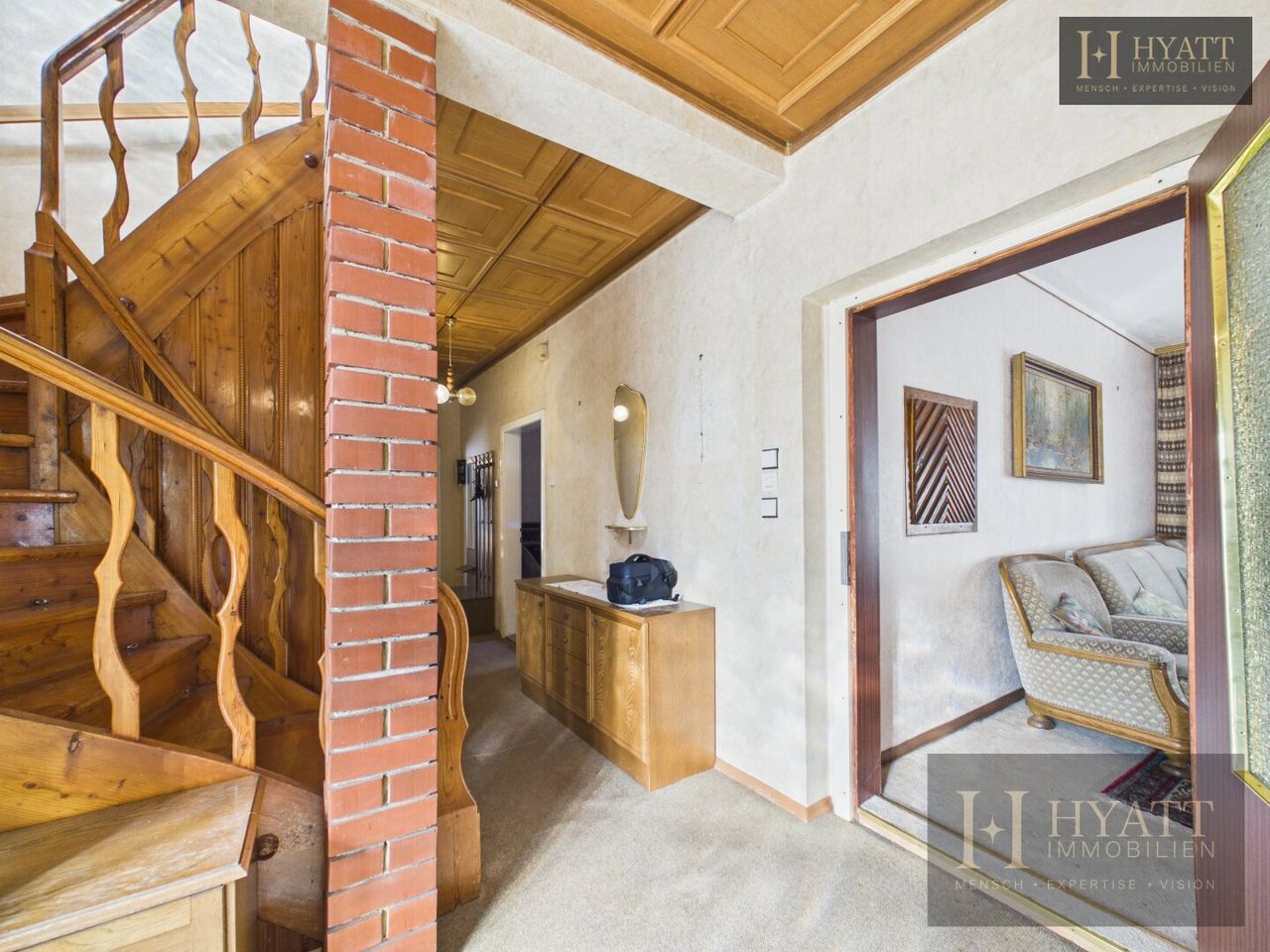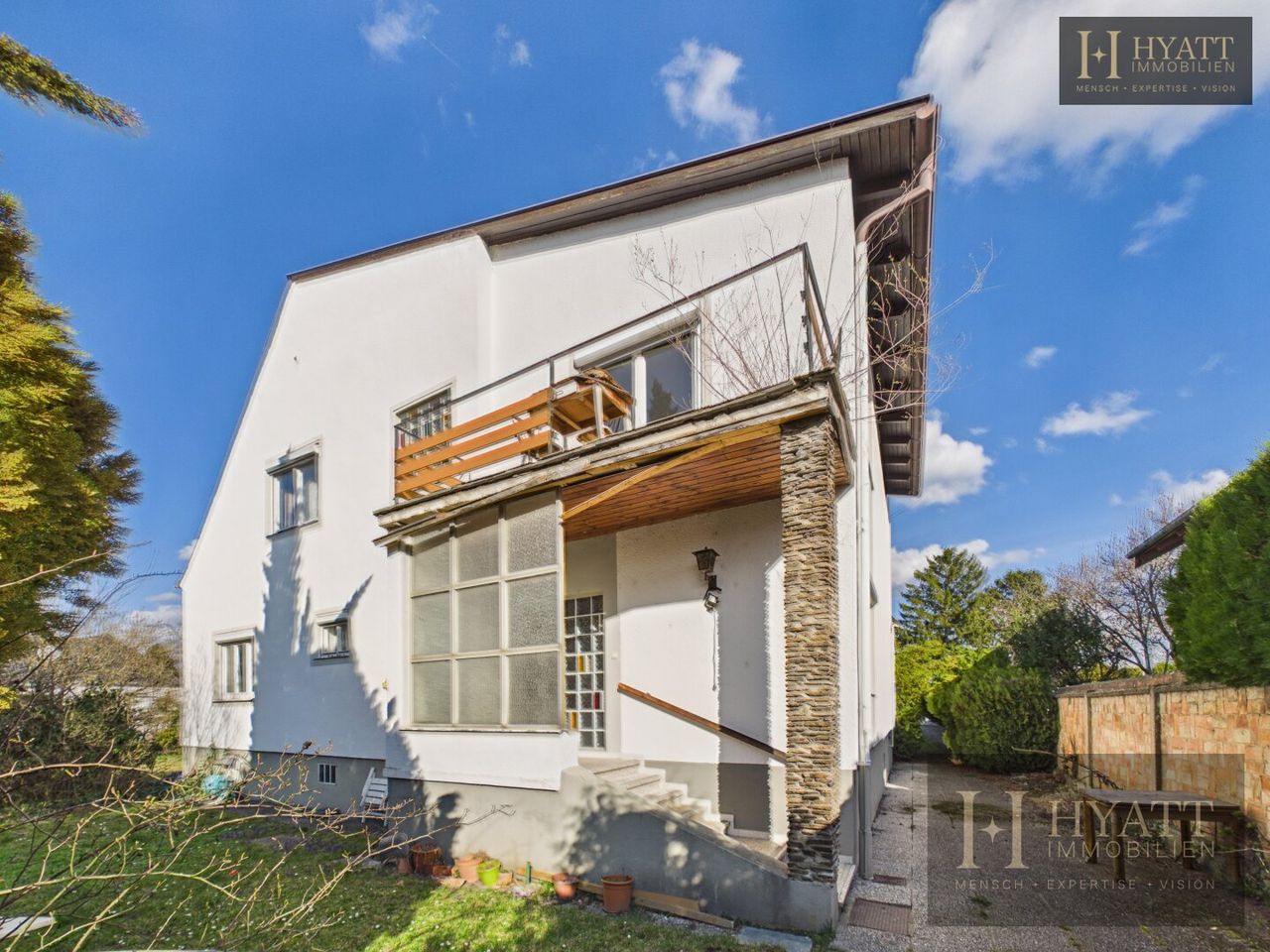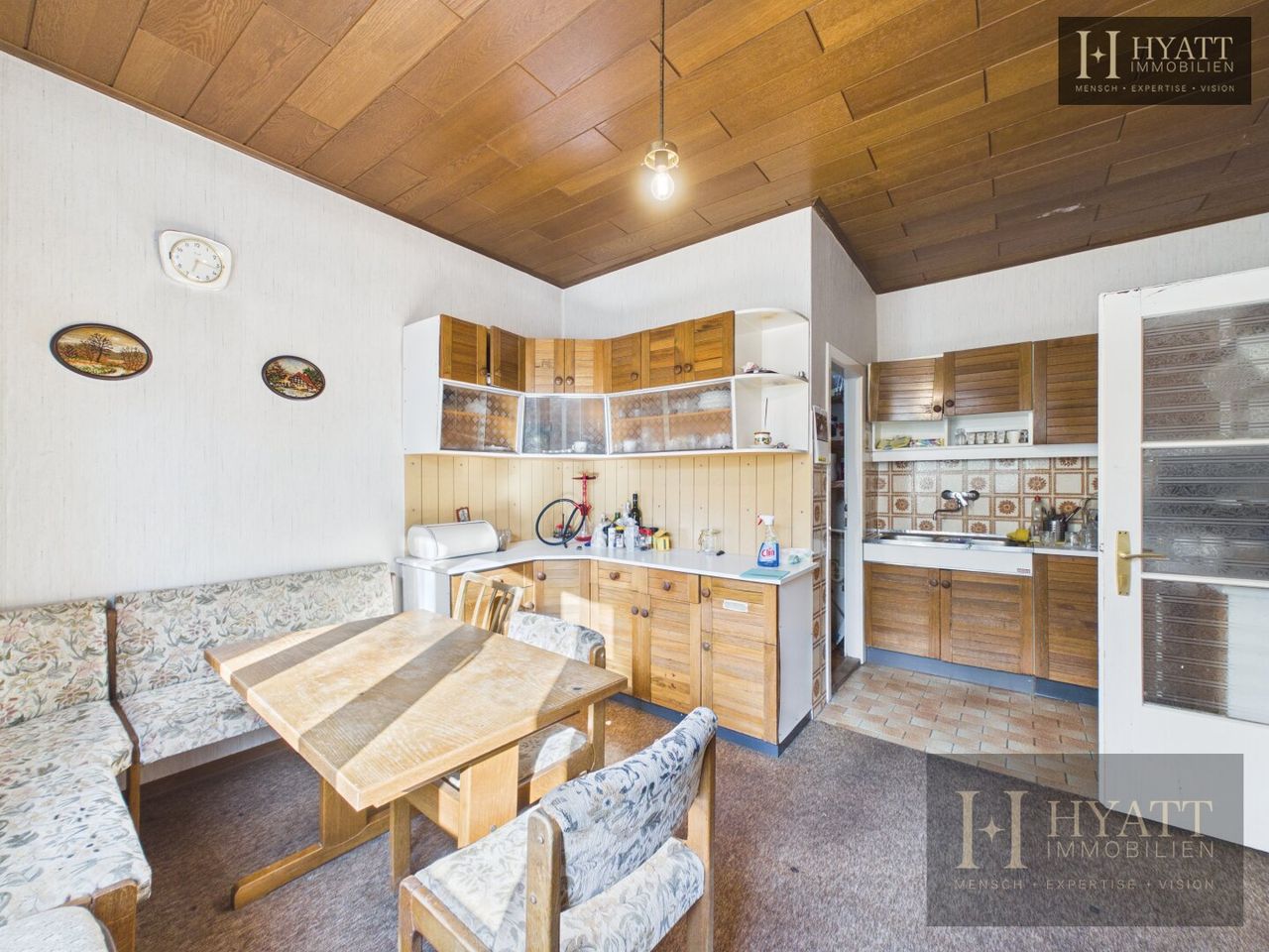 Die Innenräume sind grundsätzlich gut erhalten und bewohnbar, während im Außenbereich – insbesondere an der Fassade – Modernisierungsmaßnahmen sinnvoll sein können, um das Haus optisch und energetisch auf den heutigen Stand zu bringen.