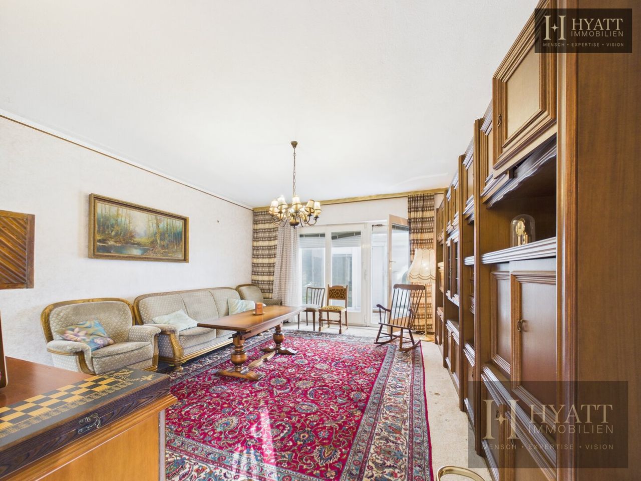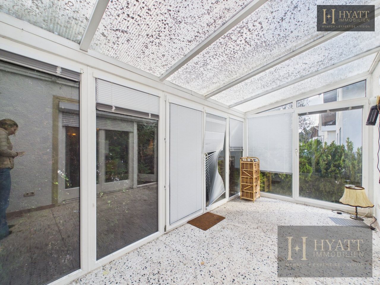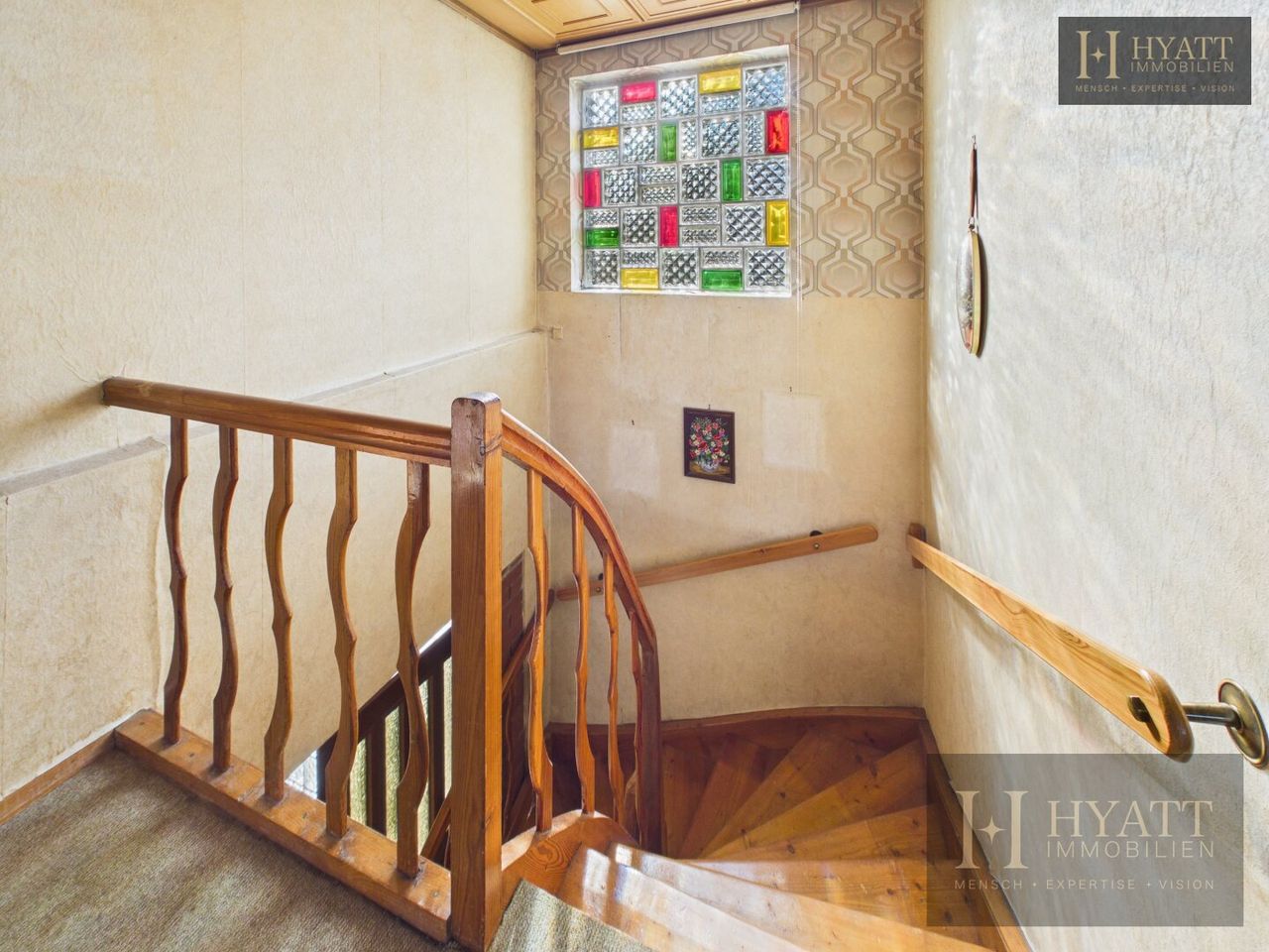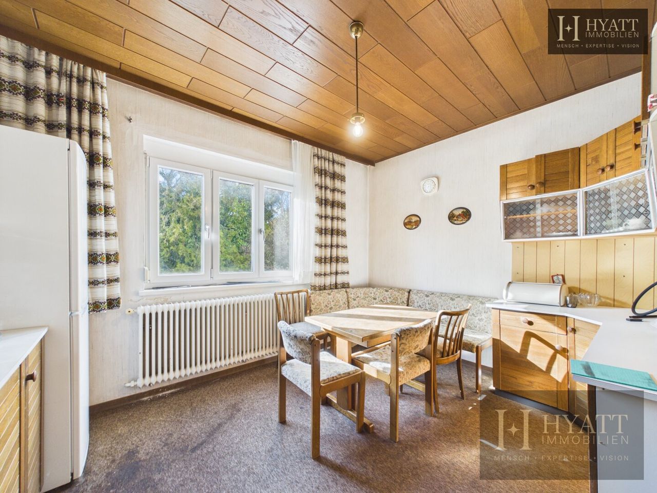 Die Innenräume sind grundsätzlich gut erhalten und bewohnbar, während im Außenbereich – insbesondere an der Fassade – Modernisierungsmaßnahmen sinnvoll sein können, um das Haus optisch und energetisch auf den heutigen Stand zu bringen.