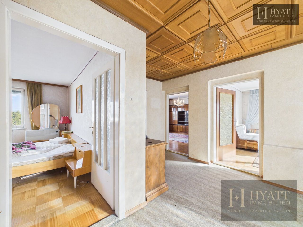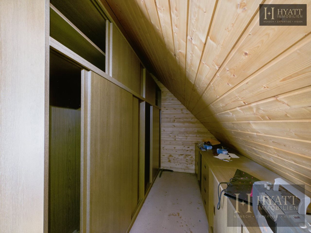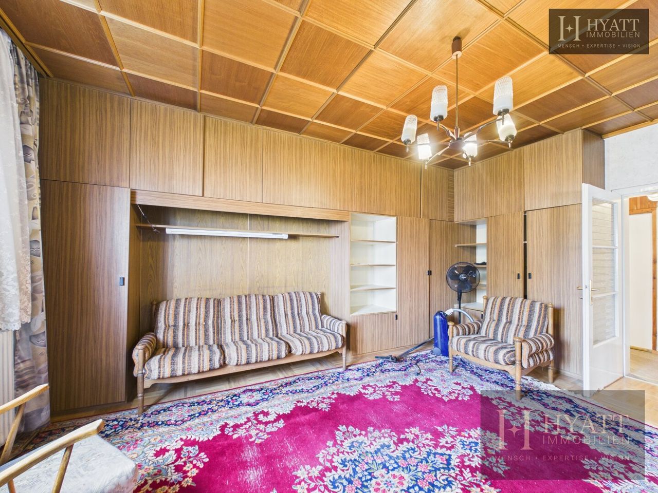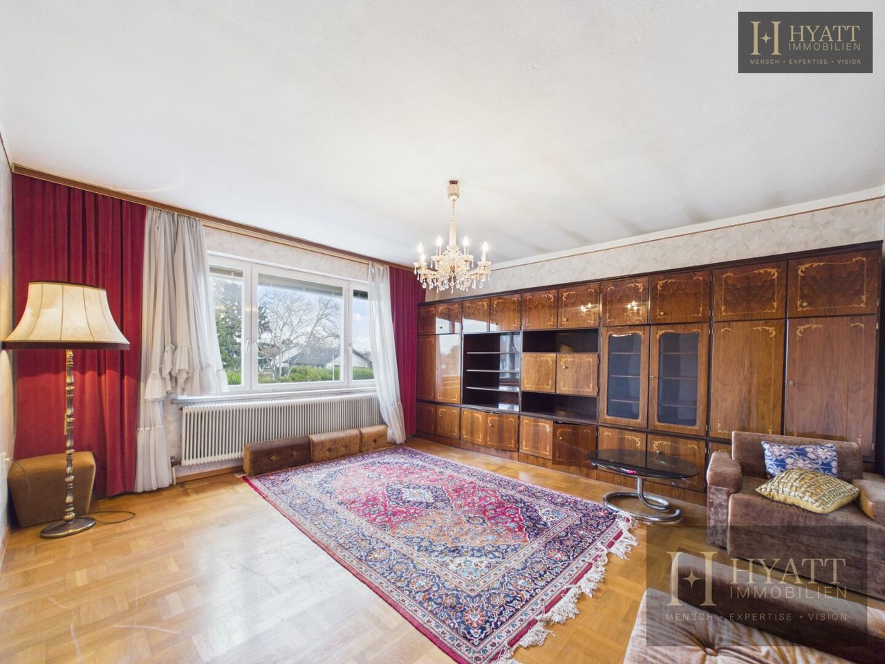 Die Innenräume sind grundsätzlich gut erhalten und bewohnbar, während im Außenbereich – insbesondere an der Fassade – Modernisierungsmaßnahmen sinnvoll sein können, um das Haus optisch und energetisch auf den heutigen Stand zu bringen.
