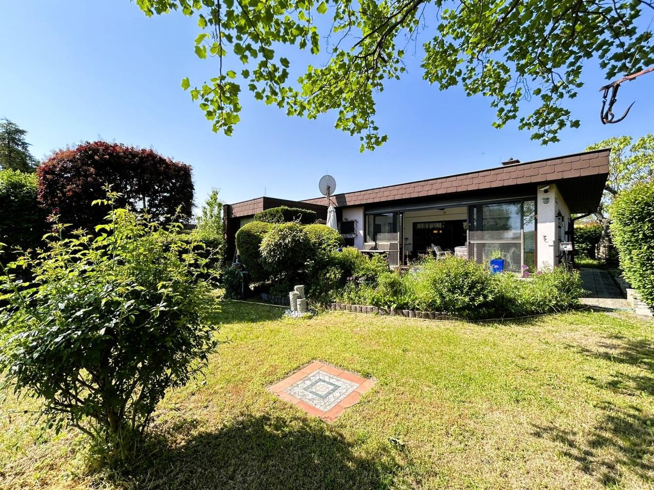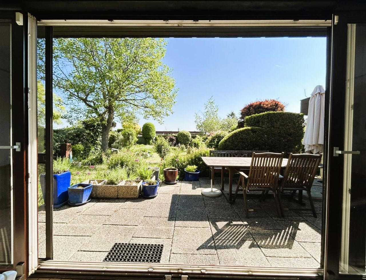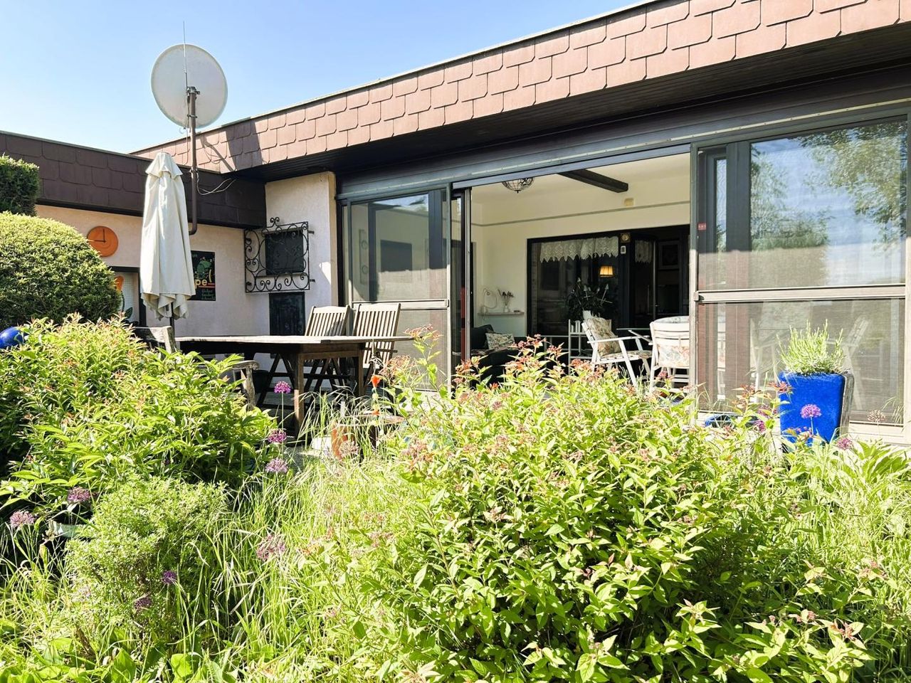 Der rund 85 m² große Bungalow wurde ca. 1980 in Massivbauweise errichtet. Die Fassade ist wärmegedämmt, eine neuwertige Gastherme sorgt für zeitgemäßen Heizkomfort. Besonders hervorzuheben ist die 2024 modernisierte, beheizbare Veranda mit neuer Glasfront und großzügigen Terrassen-Schiebetüren, die den Wohnraum lichtdurchflutet mit dem Garten verbindet.