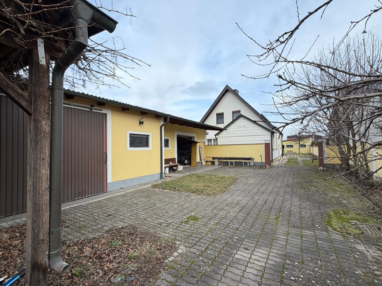 Raum für Leben, Familie & Visionen Großzügige Liegenschaft mit Wohnhaus, Nebengebäuden und außergewöhnlichem Potenzial In der beliebten Gemeinde Trausdorf an der Wulka erwartet Sie eine Immobilie, die mehr bietet als nur Wohnraum: Platz, Privatsphäre und vielfältige Nutzungsmöglichkeiten vereinen sich hier zu einem Zuhause mit Zukunft. Das Grundstück – Weite, Freiheit & Möglichkeiten Das 1.551 m² große, langgezogene Grundstück, bestehend aus zwei hintereinanderliegenden Parzellen im Bauland-Mischgebiet, überzeugt durch seine klare Gliederung und vielseitige Nutzbarkeit: • Großzügige Einfahrt mit elektrischem Einfahrtstor • Überdachter Abstellplatz • Massiv errichtete Doppelgarage • Ruhige, zurückversetzte Lage des Wohnhauses • Im hinteren Bereich: zwei Hallen mit insgesamt...