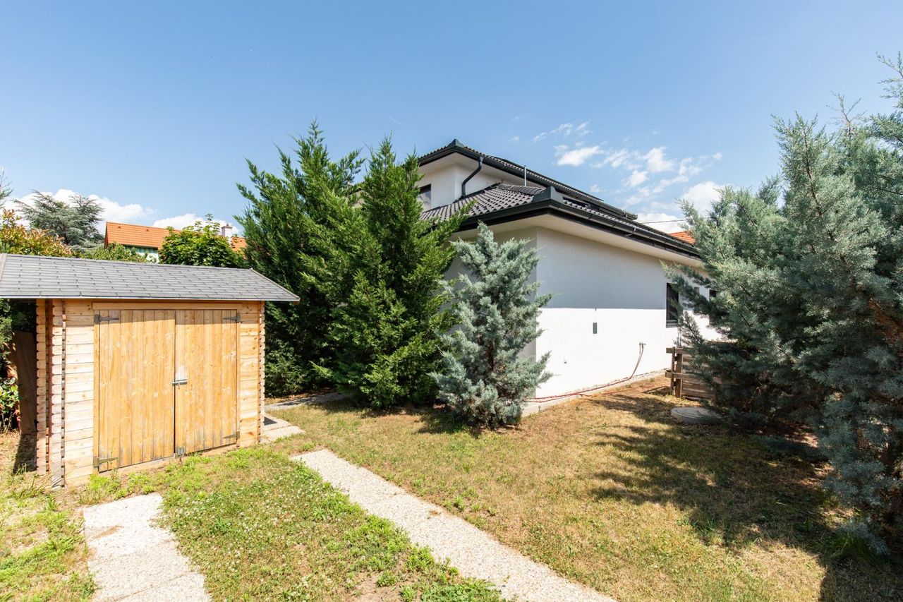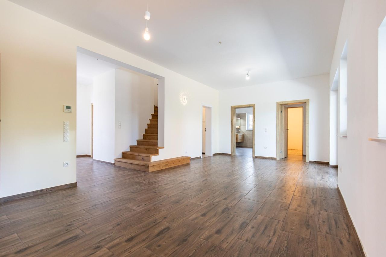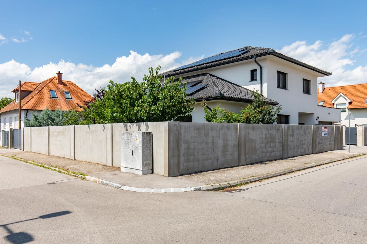 Das 2021 errichtete Ziegelmassivhaus bietet auf zwei Etagen rund 217 m² Wohnfläche – durchdacht geplant, hochwertig ausgestattet und barrierefrei im Erdgeschoss. Mit insgesamt 8 vielseitig nutzbaren Räumen – darunter derzeit Schlafzimmer mit begehbarem Schrankraum, zwei Kinderzimmer, Wohnzimmer, Bibliothek, Büro, Fitness- und Wellnesszimmer – findet hier jedes Familienmitglied seinen Rückzugsort.