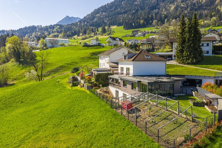 Genießen Sie die Vielfalt an Freiflächen: Ein idyllischer Garten lädt zum Verweilen und Entspannen ein, während Balkon, Wintergarten und Terrasse wundervolle Möglichkeiten bieten, die frische Luft und den traumhaften Fernblick über die malerische Vorarlberger Landschaft zu genießen. Im Innenhof stehen Ihnen vier bis fünf KFZ-Stellplätze, eine Doppelgarage und ein Carport zur Verfügung – so sind Sie und Ihre Gäste jederzeit bestens versorgt.