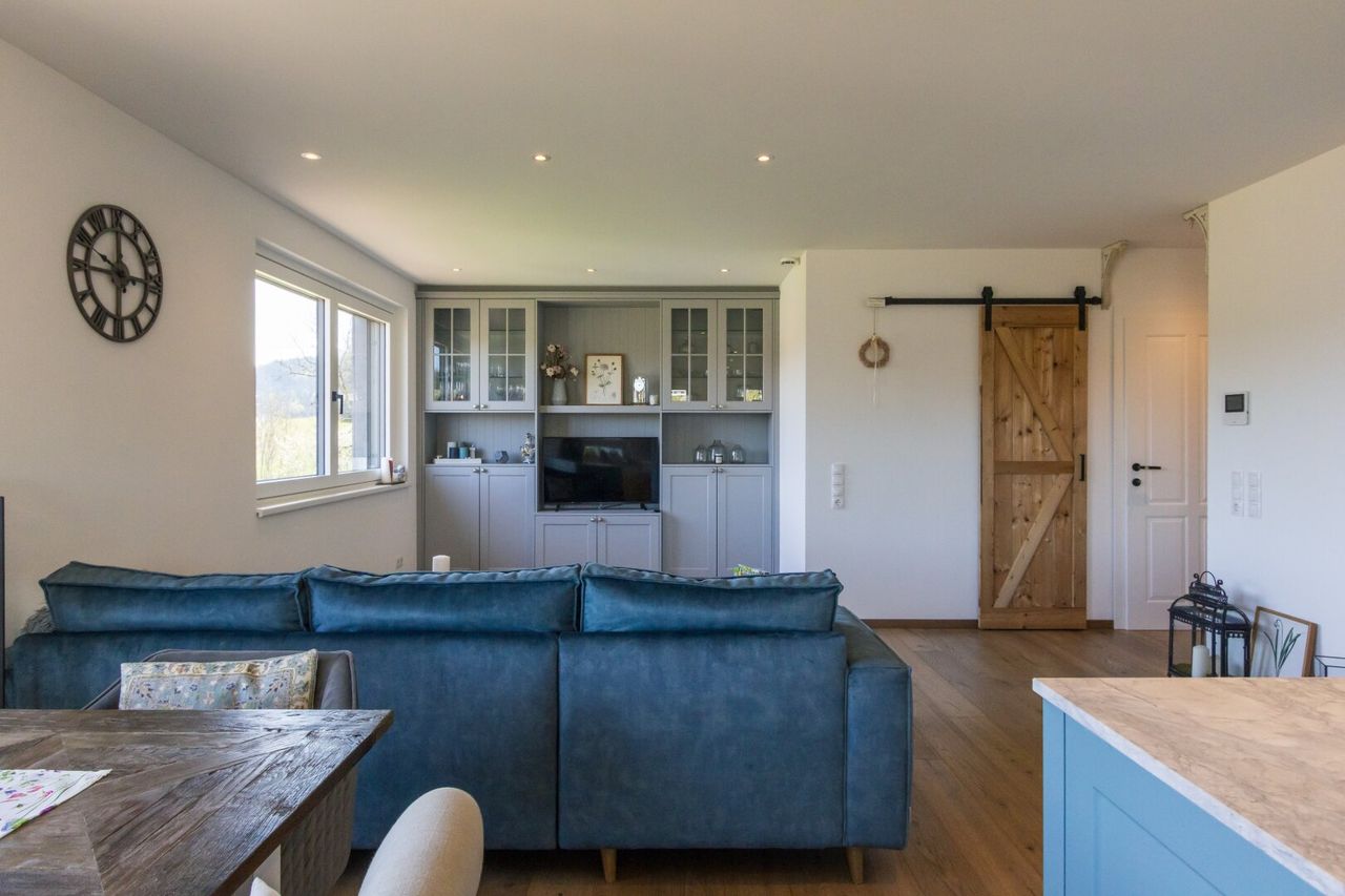 Dieses helle und freundliche Haus bietet vier gut geschnittene Zimmer, die viel Platz für Ihre Familie und individuelle Gestaltungsmöglichkeiten bieten. Die durchdachte Raumaufteilung mit dem amerikanischen Landhausstil schafft eine angenehme Atmosphäre, in der Sie sich sofort wohlfühlen werden. Besonders hervorzuheben sind die hochwertigen Materialien wie Dielen und Fliesen, die dem Haus eine warme und einzigartige Note verleihen.
