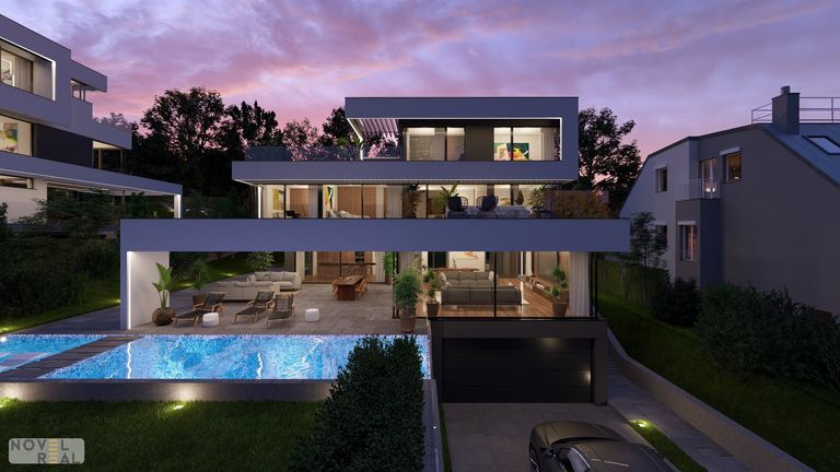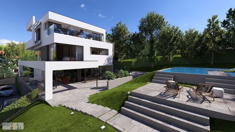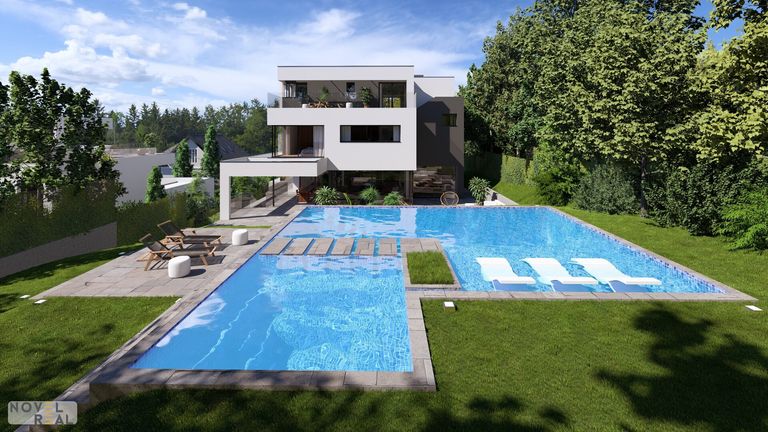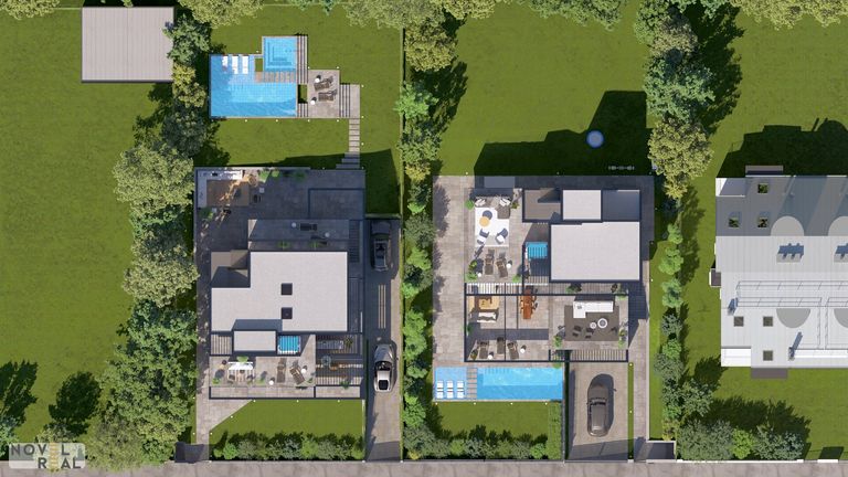 Das hier angebotene Grundstück verfügt über eine genehmigte Bauplanung für zwei Villen von namhafen Architekten. Darüber hinaus ist eine Studie für Designervillen von Architekt Leonte verfügbar. Das Projekt vereint moderne Architektur mit urbaner Funktionalität und einem starken Fokus auf Lebensqualität.