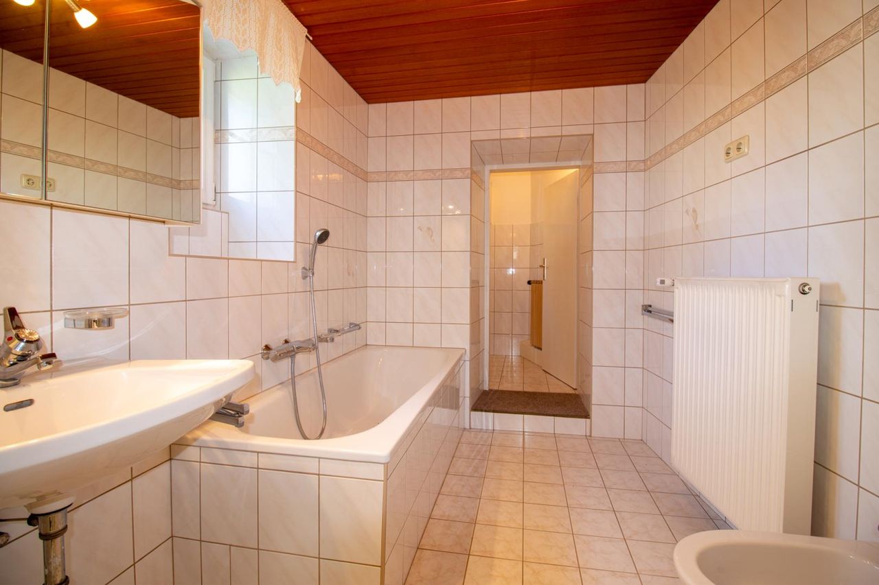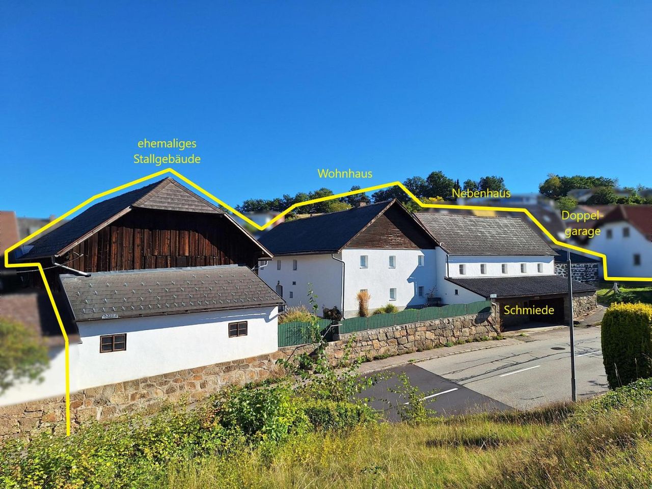 Neben dem Hauptgebäude befindet sich ein weiteres kleines, sanierungsbedürftiges Wohnhaus mit etwa 70 m² Wohnfläche, kleinem Garten und einer soliden Doppelgarage aus Stein. Darunter liegt eine historische Schmiede, die um 1857 errichtet und bis 1958 betrieben wurde. Sie ist gut erhalten und könnte künftig als Schauschmiede genutzt werden. Das Anwesen bietet zudem im ehemaligen Stallgebäude einen Einstellplatz mit großzügigen Maßen von 3 m Breite, 3 m Höhe und 9 m Länge sowie darüber einen zweigeschossigen Stadl mit vielfältigem Nutzungspotenzial.