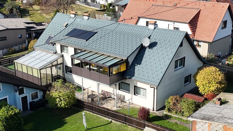 Im Inneren des Hauses erwarten Sie zwei teilmöblierte Wohneinheiten mit insgesamt zwei Küchen, zwei Esszimmern, zwei Wohnzimmern, sechs Zimmern (Schlafen, Homeoffice, Wellness,...), vier WCs und zwei Bädern - ausreichend Platz für eine Großfamilie oder auch zwei kleineren Familien.