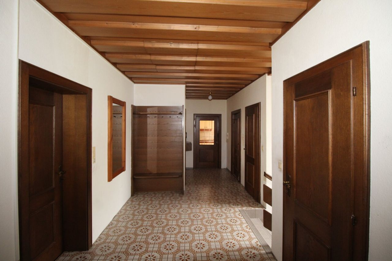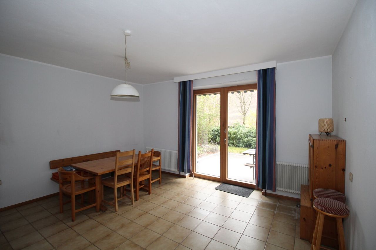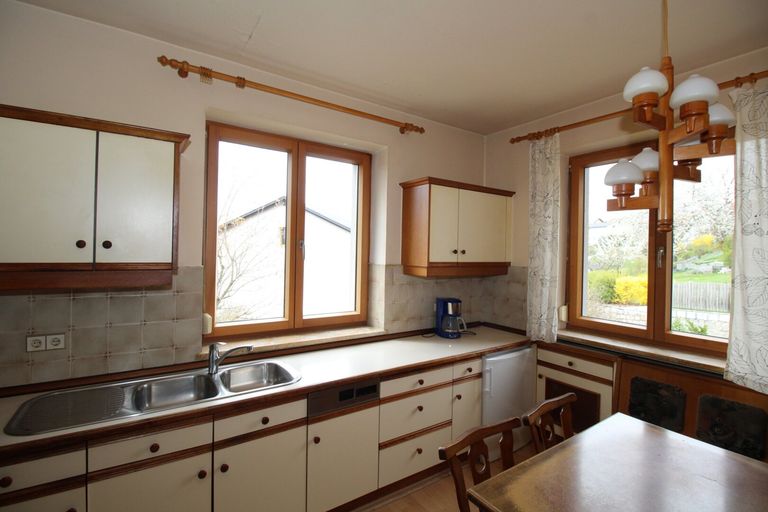 Das Haus ist mit einer funktionalen Einbauküche ausgestattet und verfügt über zwei Badezimmer und zwei WCs. Die Böden sind mit Fliesen, Laminat und Parkett ausgelegt, was für ein angenehmes Wohnklima sorgt. Für behagliche Wärme in den Wintermonaten sorgt eine Öl-Zentralheizung.