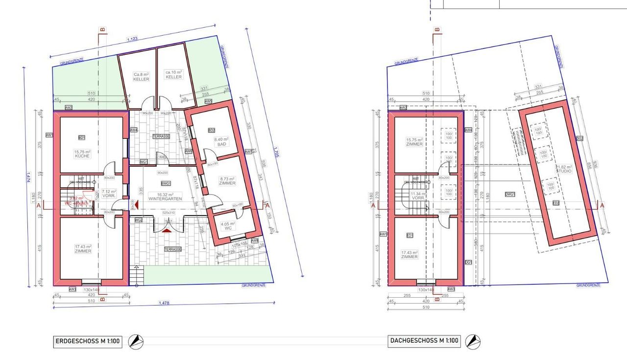 Auf ca. 152 m² Wohnfläche verteilen sich insgesamt fünf Zimmer, darunter ein großzügiges Studio im Dachgeschoss und drei flexibel nutzbare Schlaf- oder Arbeitsräume. Die massive Ziegelbauweise, kombiniert mit modernen Elementen wie den 2025 neu eingebauten 3-fach-isolierten Fenstern, sorgt für ein behagliches Wohnklima.