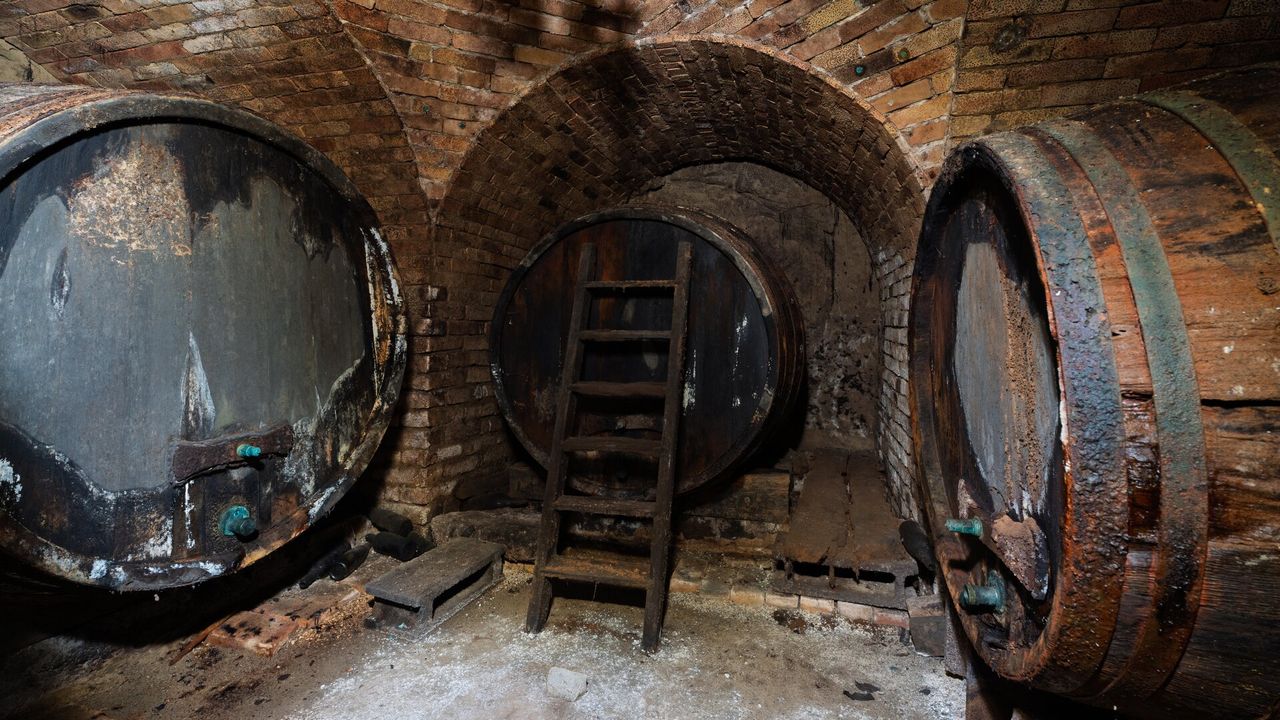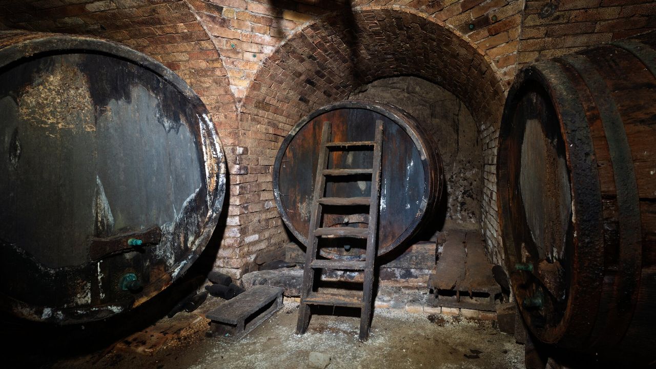 Im Eingangsbereich befindet sich ein klassischer Presshausbereich mit mehreren Räumen. Über einen Treppenabgang gelangt man in die beeindruckende Kellerröhre, in der sich noch alte Weinfässer befinden.