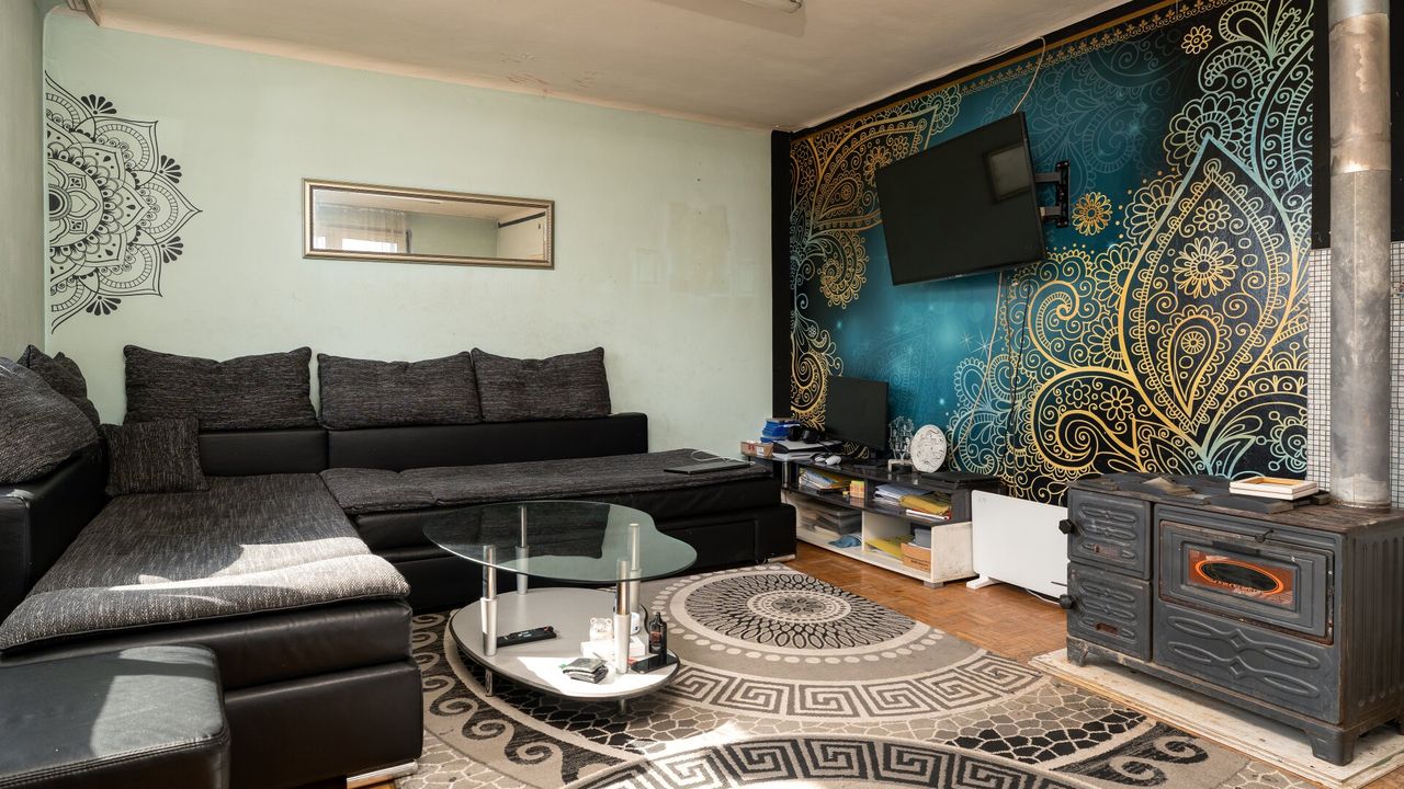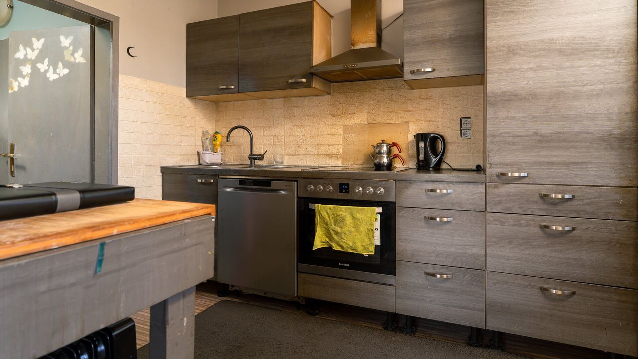 Im Wohn-Essbereich befindet sich ein zusätzlicher Ofen