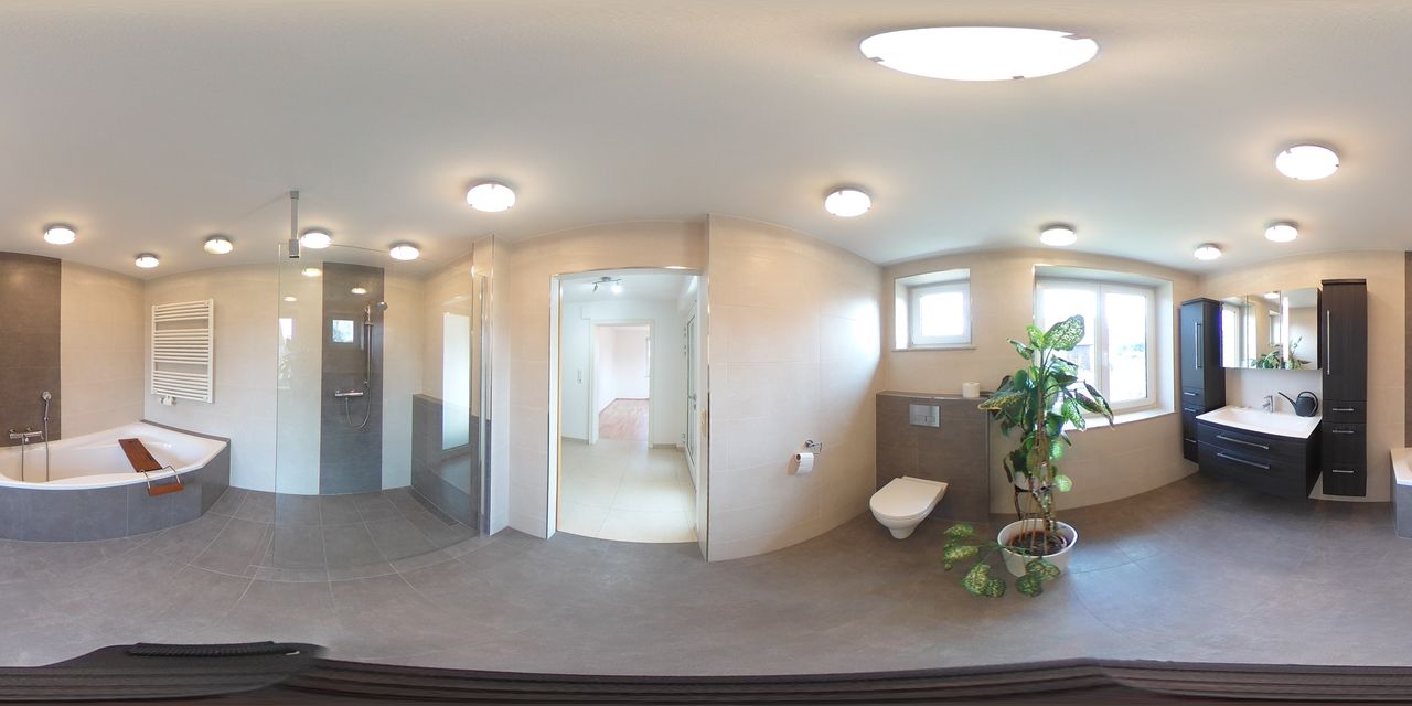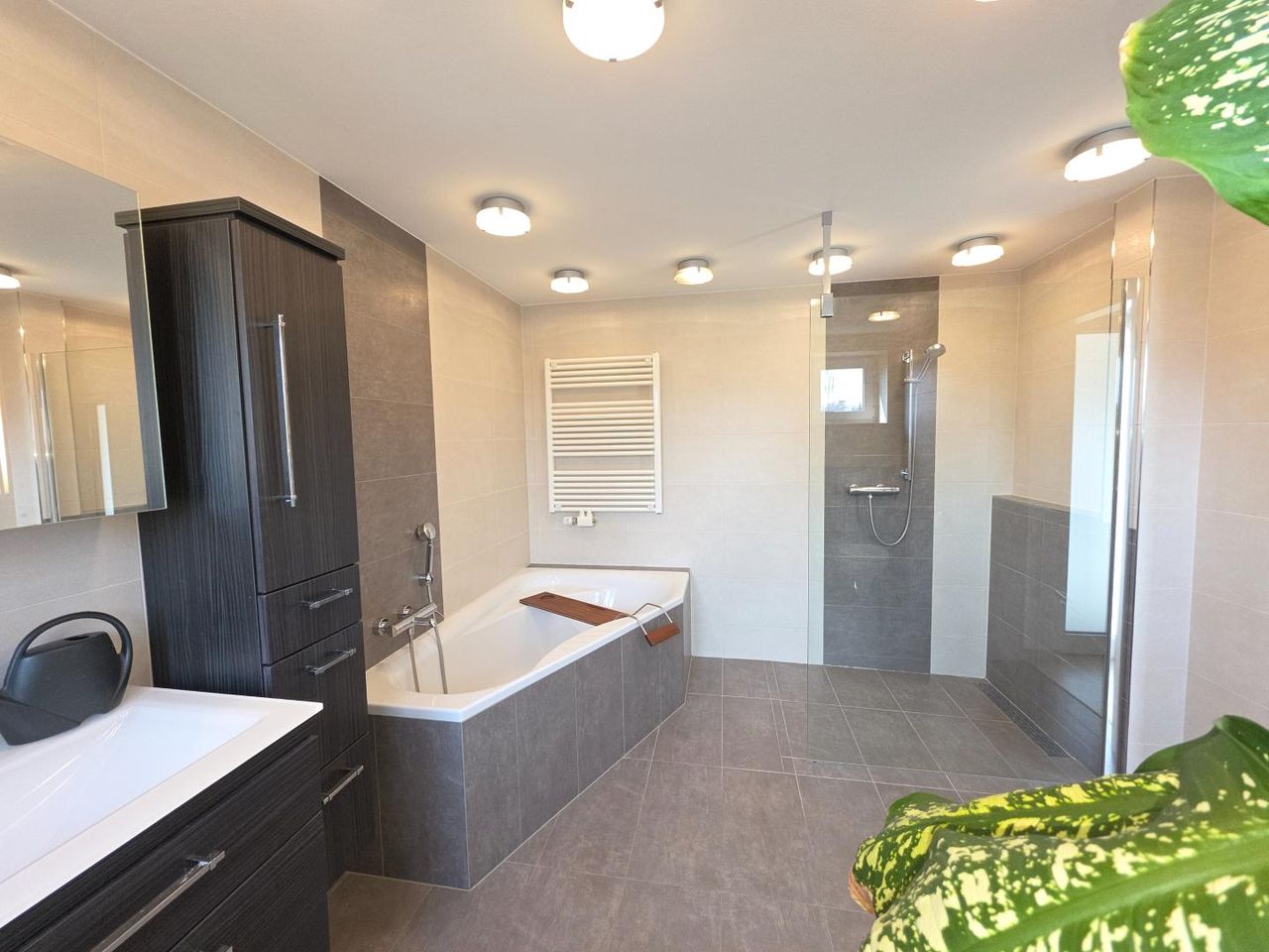 - Badezimmer mit Walk-in Dusche, Badewanne und WC