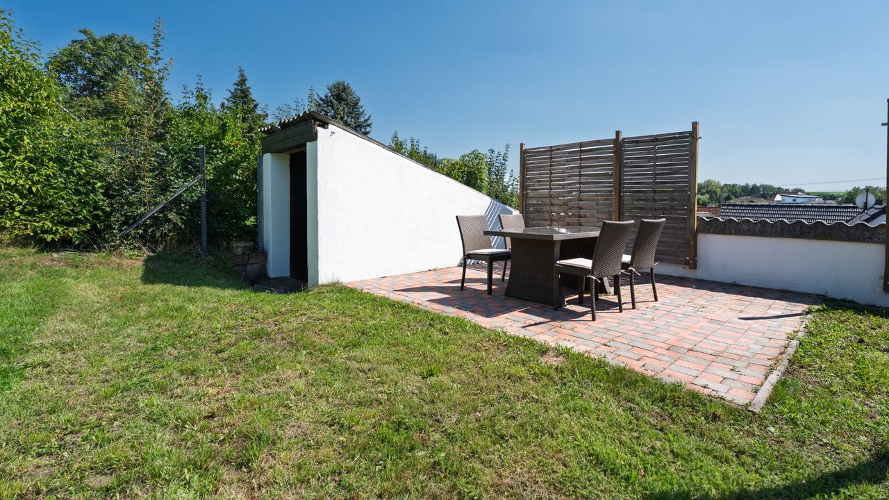 Über einige Treppenstufen erreicht man den großzügigen Gartenbereich. Dieser liegt in herrlicher Grünruhelage und bietet viel Platz für Kinder zum Spielen, für Gartenprojekte oder entspannte Familienstunden im Freien. Das Grundstück ist in diesem Bereich als Grünland gewidmet, eine Bebauung ist daher nicht möglich. Der Garten weist einen leichten Hang auf und ist auch über eine Zufahrt von oben erschlossen.