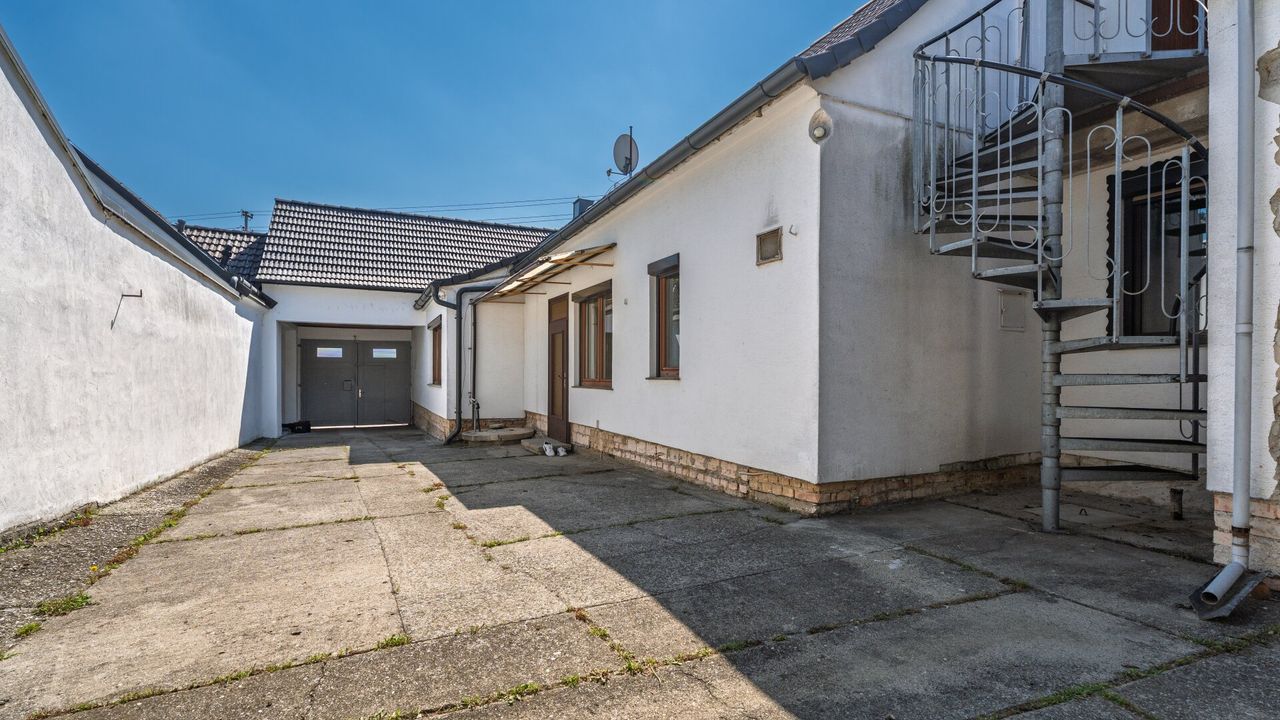 Im Hofbereich befindet sich ein Brunnen. Ein kleines Tor führt zu einem Schuppen mit reichlich Stauraum, darüber hinaus gibt es noch eine zusätzliche Lagermöglichkeit. Geradeaus gelangt man in die belüftete Kellerröhre (ca. 10 m lang, rund 2,33 m breit).