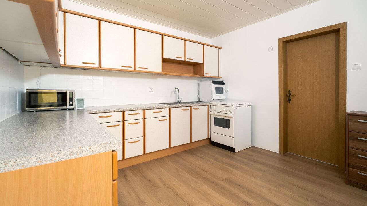 Im Haus erwartet Sie ein großzügiger Vorraum. Von hier gelangt man rechterhand in das Badezimmer und geradeaus in die Küche. Angrenzend an die Küche befindet sich das Wohnzimmer, das Zugang zum Esszimmer bietet. Dieses kann ebenso als zusätzliches Schlafzimmer genutzt werden.