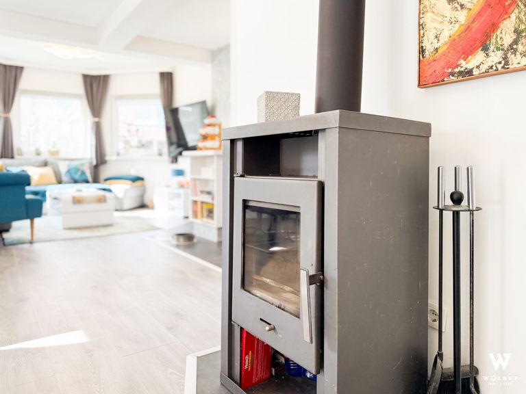 - Holzofen / Kamin im Wohnzimmer