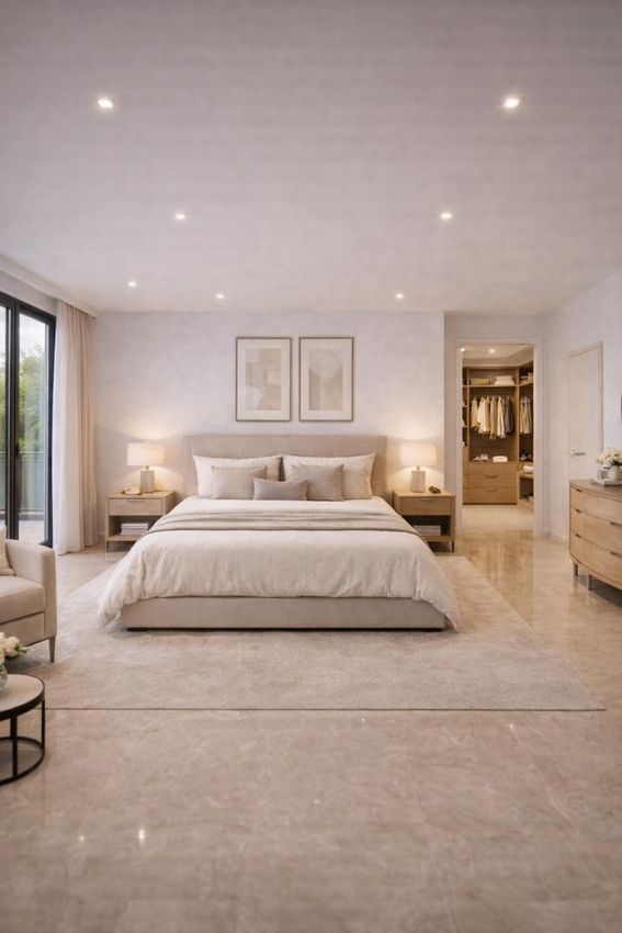 Luft-Wärmepumpen für energieeffizientes Heizen, die optional auf Kühlung erweitert werden können. Die Fußbodenheizung sorgt für eine angenehme Wärme im ganzen Haus und die großen, hochwertigen Qualitätsfenster mit 3-Scheiben-Isolier-Wärmeschutzverglasung tragen zur Energieeffizienz bei.