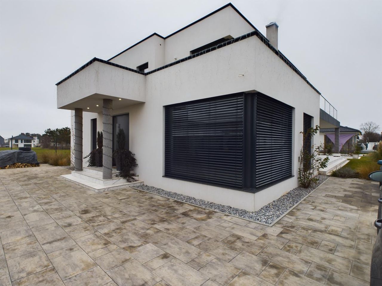 Stilvolle, möblierte Villa nahe Wien in Gänserndorf Stellen Sie sich vor, Sie packen Ihre Koffer und ziehen in eine Villa ein, die alle Ihre Wohnträume erfüllt. Dieses beeindruckende Einfamilienhaus, 2021 erbaut, kombiniert moderne Architektur mit zeitloser Eleganz und bietet Ihnen ein Wohnerlebnis auf höchstem Niveau. Der offene Grundriss, lichtdurchflutete Räume und erstklassige Materialien schaffen ein Ambiente, in dem Sie sich vom ersten Moment an wohlfühlen werden. Beim Betreten des Hauses empfängt Sie ein heller Eingangsbereich, der direkt in den großzügigen Wohn- und Essbereich führt. Hier finden Sie eine moderne Küche mit Kochinsel, ausgestattet mit hochwertigen Geräten, die jeden Hobbykoch begeistern...