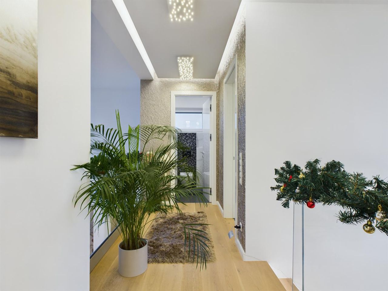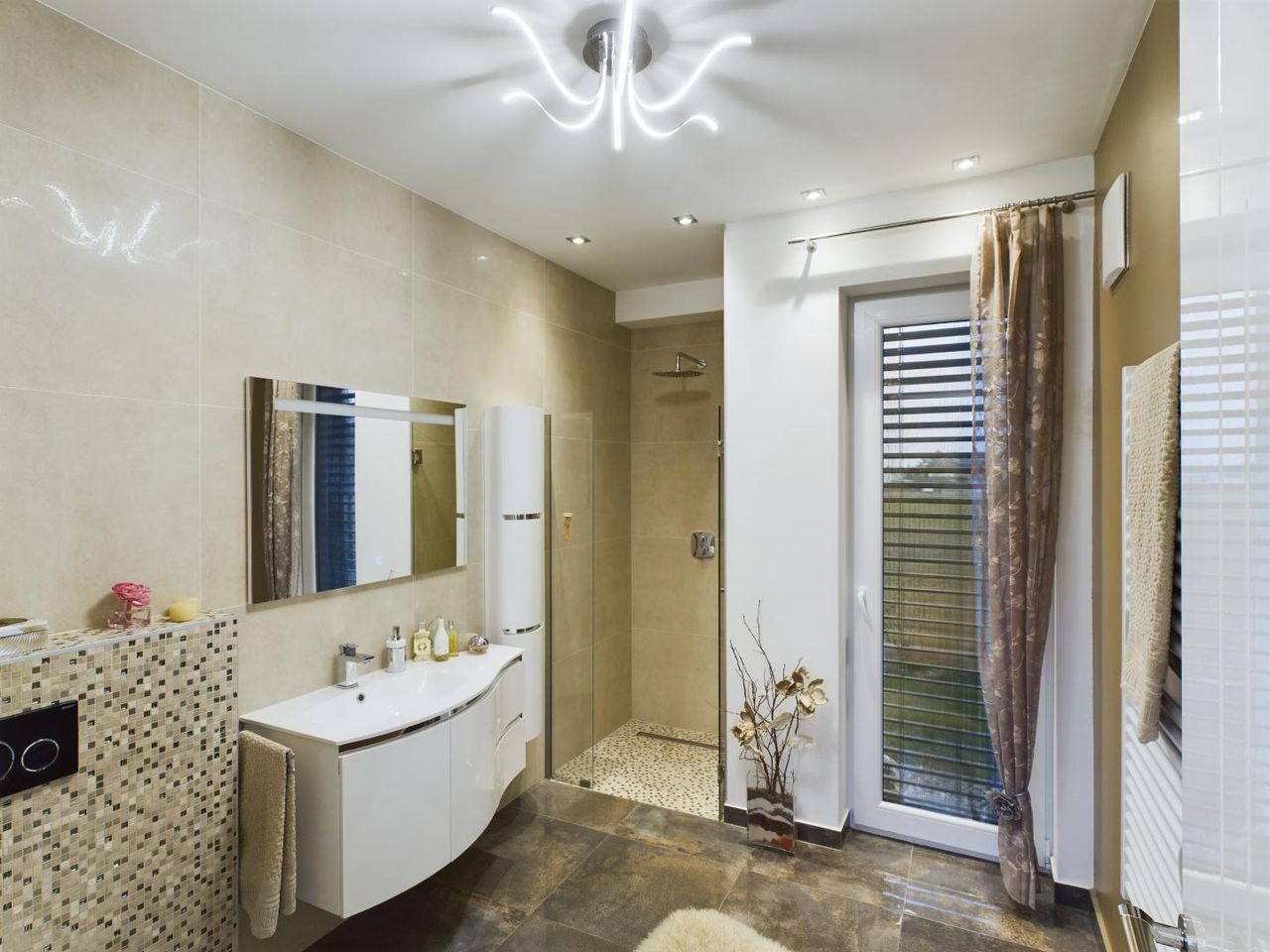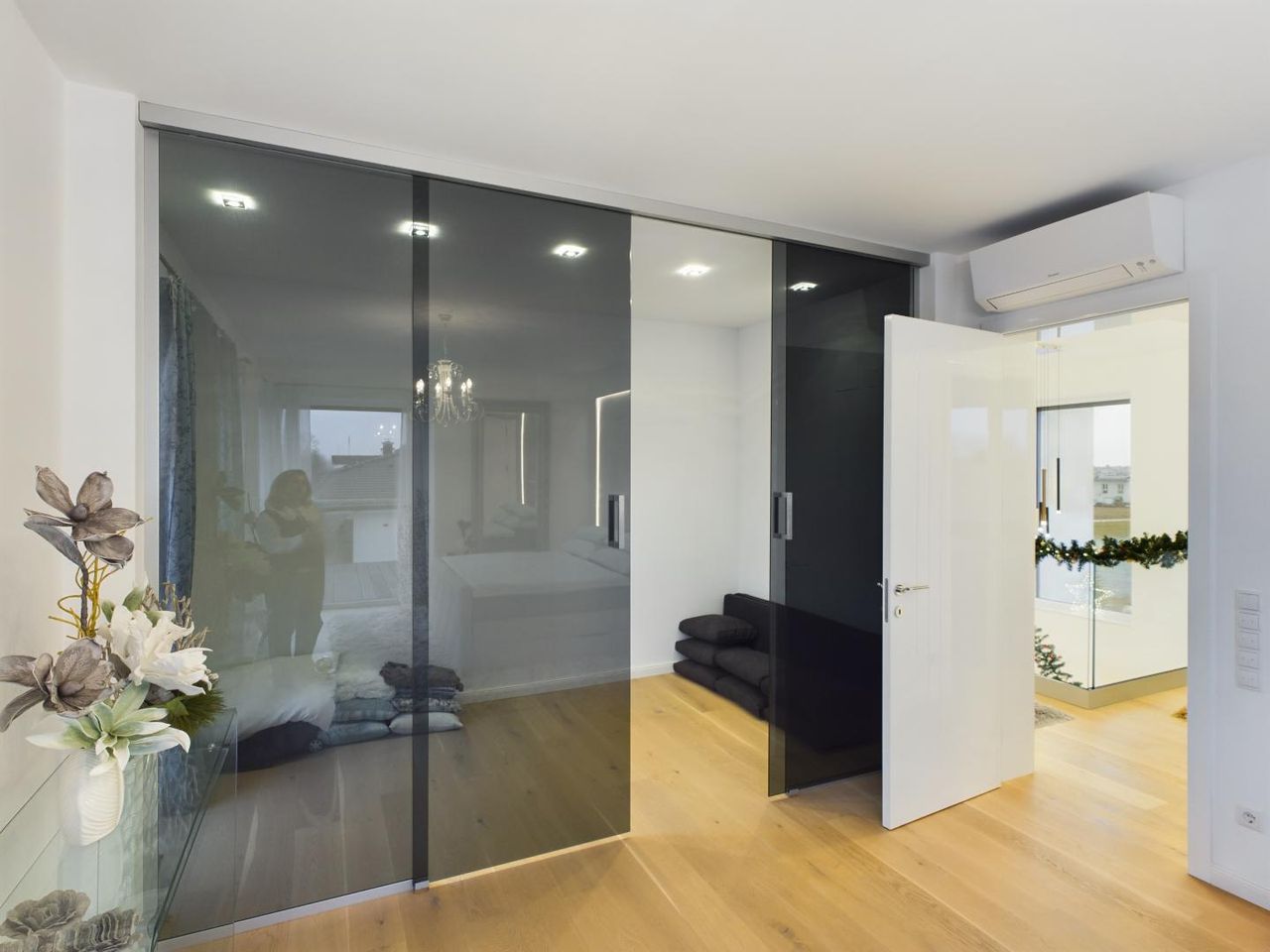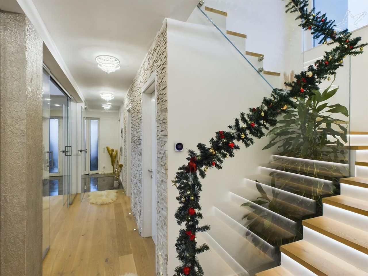 Auch die Technik lässt keine Wünsche offen. Mit Klimaanlagen in fünf Räumen, einer effizienten Luftwärmepumpe, Fußbodenheizung und hochwertigen Markenprodukten wie Siemens, Villeroy & Boch und Hansgrohe genießen Sie höchsten Komfort. Die edlen Eichenparkettböden und Design-Fliesen verleihen jedem Raum eine besondere Note.