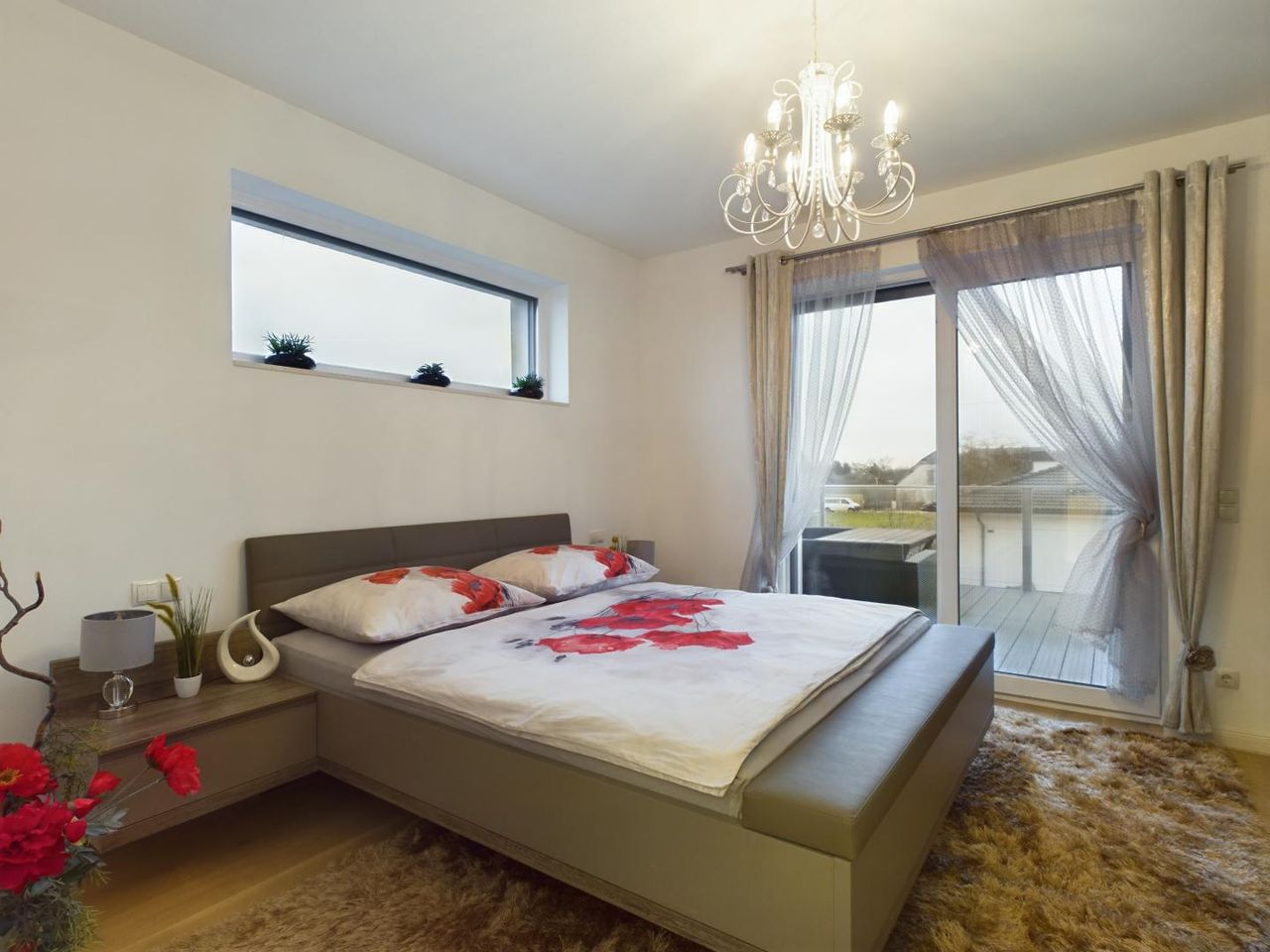 Im Obergeschoss erwarten Sie zwei lichtdurchflutete Schlafzimmer, eines davon mit begehbarem Kleiderschrank, sowie ein großes Badezimmer, das keine Wünsche offen lässt. Ob Doppelwaschtisch, Badewanne, Dusche oder WC – hier wurde an alles gedacht. Die Galerie mit Blick in den Wohnbereich bietet Zugang zu einem großzügigen Balkon, der zum Entspannen einlädt.