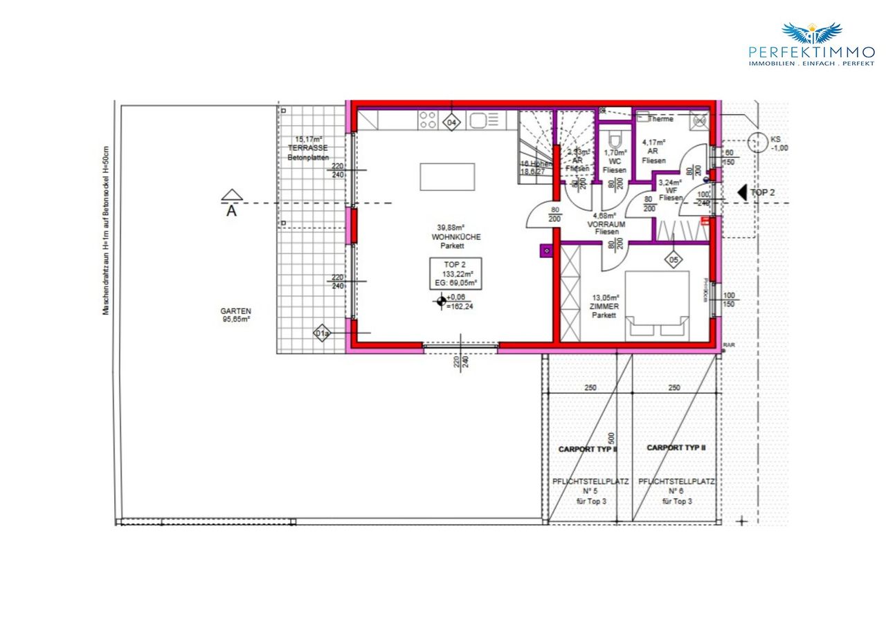 Mit 133 m² Wohnfläche, sonniger Terrasse, privatem Eigengarten und zwei Carport-Abstellplätzen präsentiert sich dieses Objekt als moderne Wohlfühloase – ideal für alle, die Wert auf Qualität, Ruhe und Zukunftssicherheit legen.