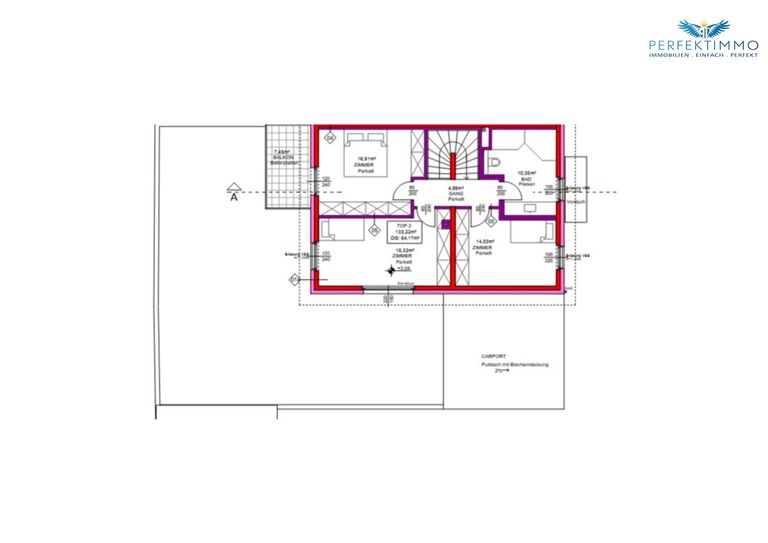 Der obere Wohnbereich besticht durch drei hervorragend proportionierte Schlafzimmer, die vielseitig nutzbar sind. Das moderne Badezimmer und der Balkon schaffen zusätzlichen Komfort und Raum für entspannte Momente.