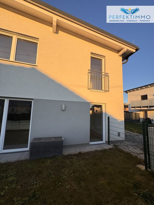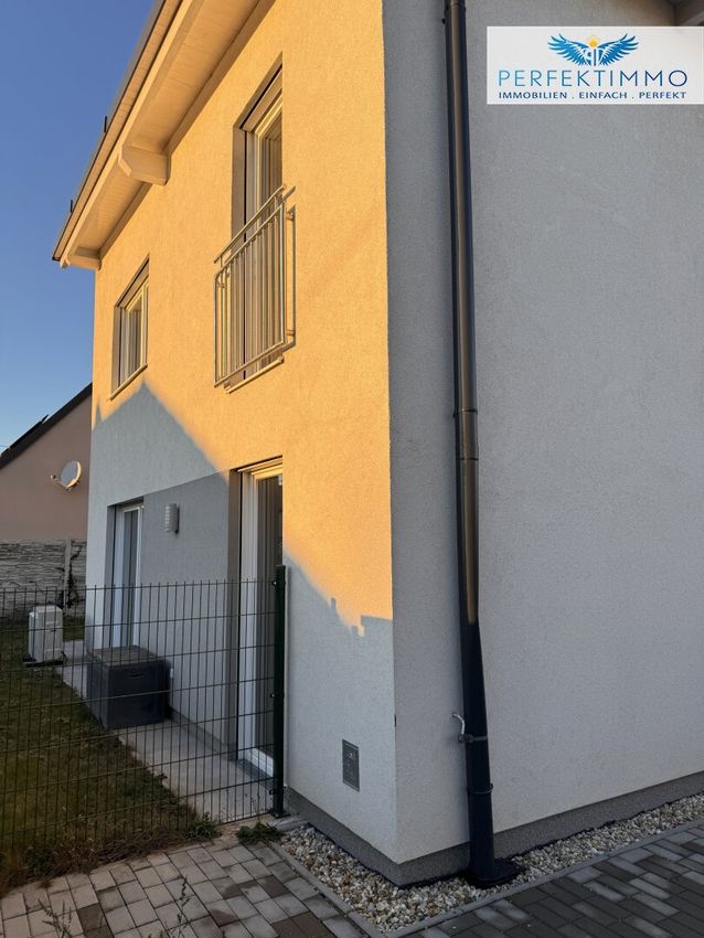 Diese außergewöhnliche Doppelhaushälfte (Haus Nr. 37/5) vereint stilvolle Architektur, durchdachte Raumplanung und hochwertige Ausstattung zu einem Wohngefühl, das in Strasshof selten angeboten wird. Mit 133 m² Wohnfläche, sonniger Terrasse, privatem Eigengarten und zwei Carport-Abstellplätzen präsentiert sich dieses Objekt als moderne Wohlfühloase – ideal für alle, die Wert auf Qualität, Ruhe und Zukunftssicherheit legen.