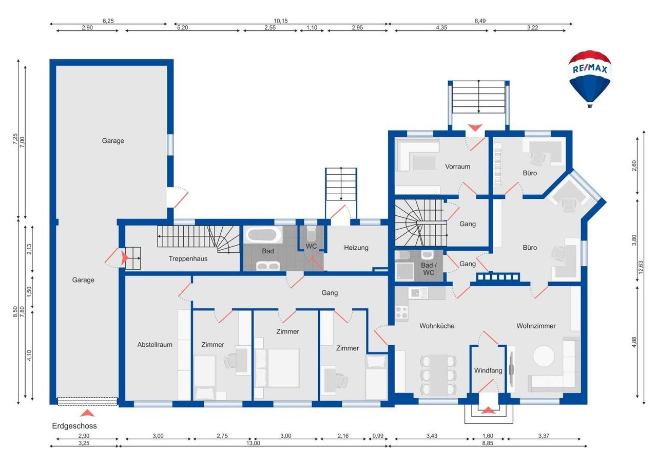 • Großzügige Raumaufteilung mit vielfältigen Nutzungsmöglichkeiten