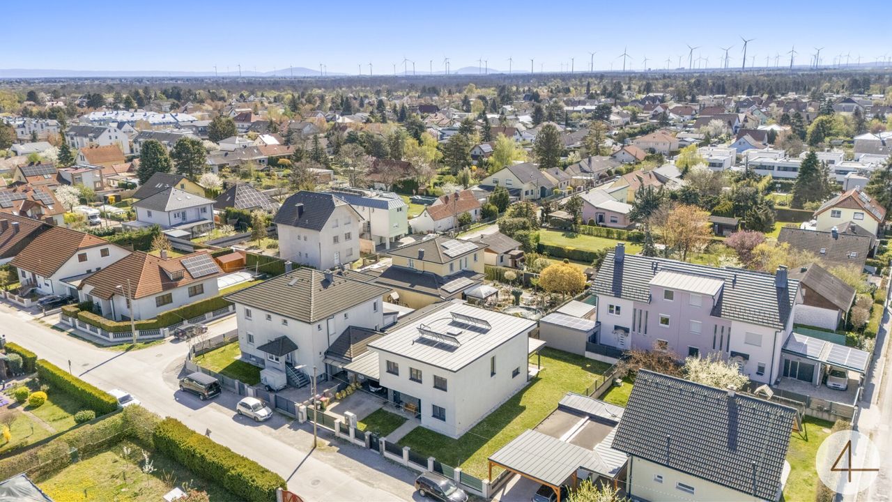 Dieses hochwertige Einfamilienhaus in Strasshof an der Nordbahn vereint moderne Architektur, energieeffiziente Bauweise und durchdachten Wohnkomfort auf rund 166 m² Wohnfläche.