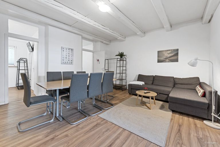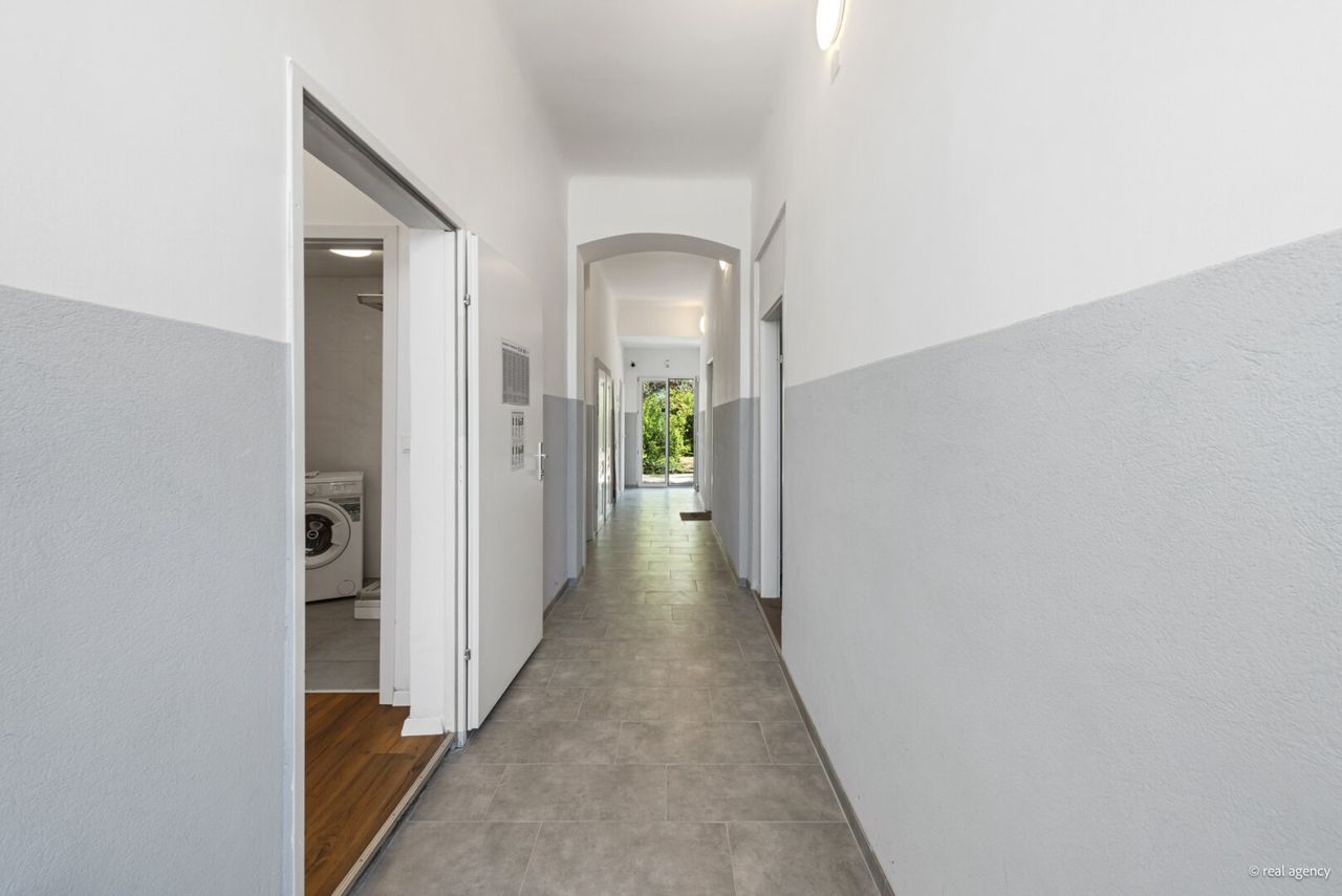 Das Haus umfasst zwei separate Wohneinheiten mit insgesamt sieben Zimmern. Beide Wohnungen verfügen über eine eigene Küche und ein Badezimmer.