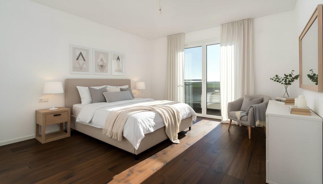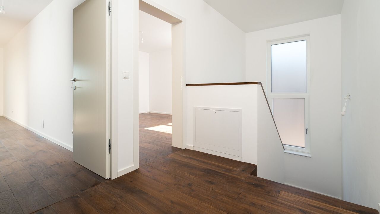 Linkerhand befindet sich das erste Schlafzimmer mit einem Eckfenster, das für eine besonders freundliche Atmosphäre sorgt. Geradeaus liegt das Hauptbadezimmer mit Doppelwaschbecken, WC und Badewanne. Rechterhand befinden sich ein weiteres Zimmer sowie der großzügige Elternbereich. Dieser überzeugt mit einem eigenen Badezimmer(Dusche, WC, Doppelwaschbecken) und einem begehbaren Schrankraum, der dank Lichtkuppel hell und freundlich wirkt. Der geräumige Schlafbereich mit einem doppelflügeligen Fenster macht diesen Rückzugsort perfekt.
