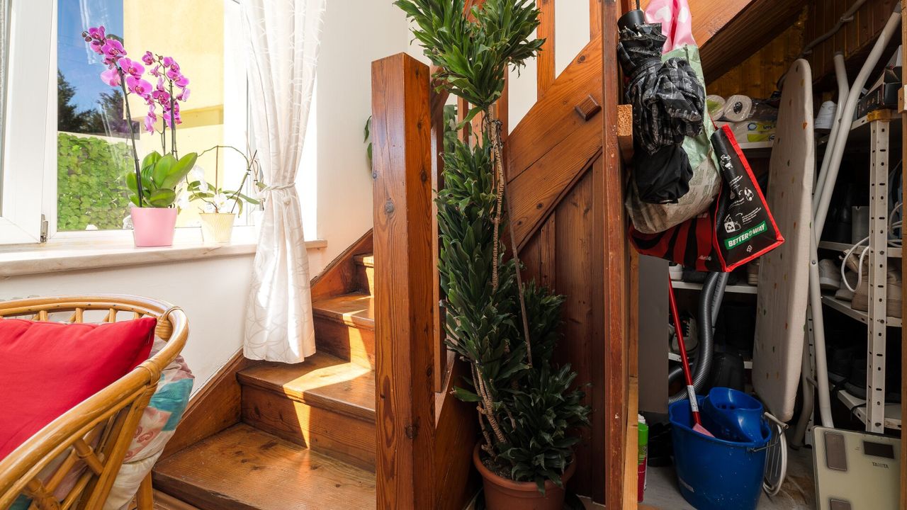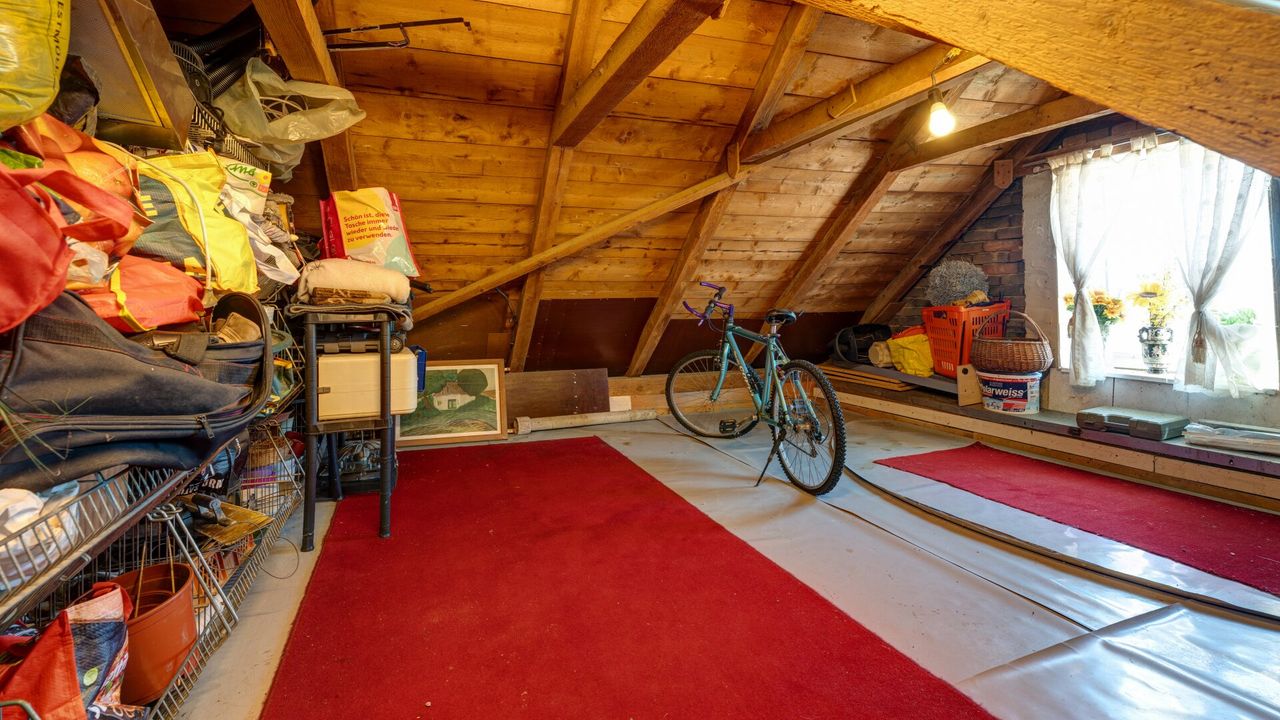 Das Dachgeschoss dient aktuell als praktische Abstellfläche und bietet zusätzlichen Stauraum.