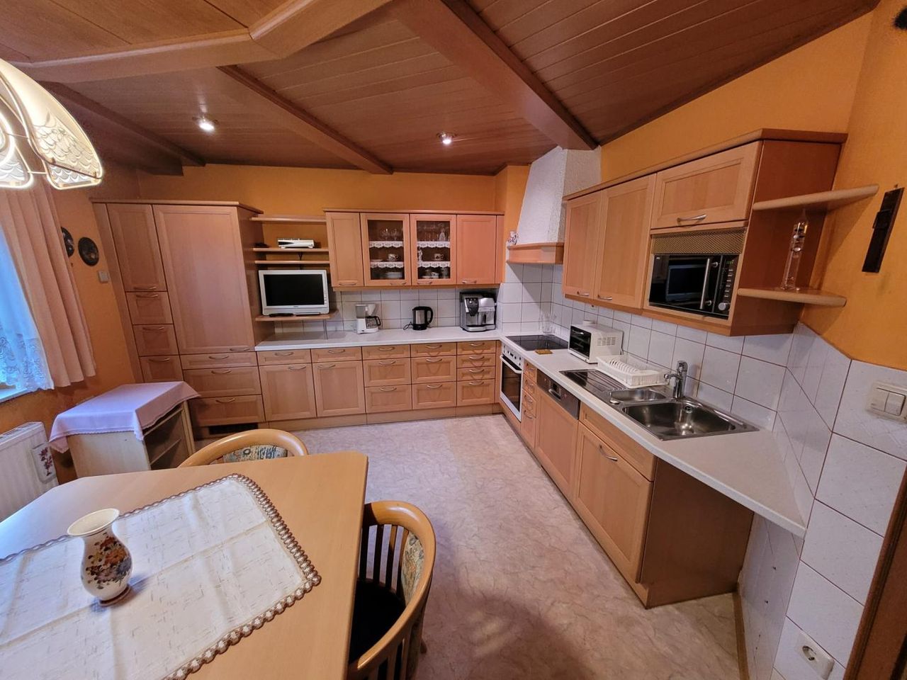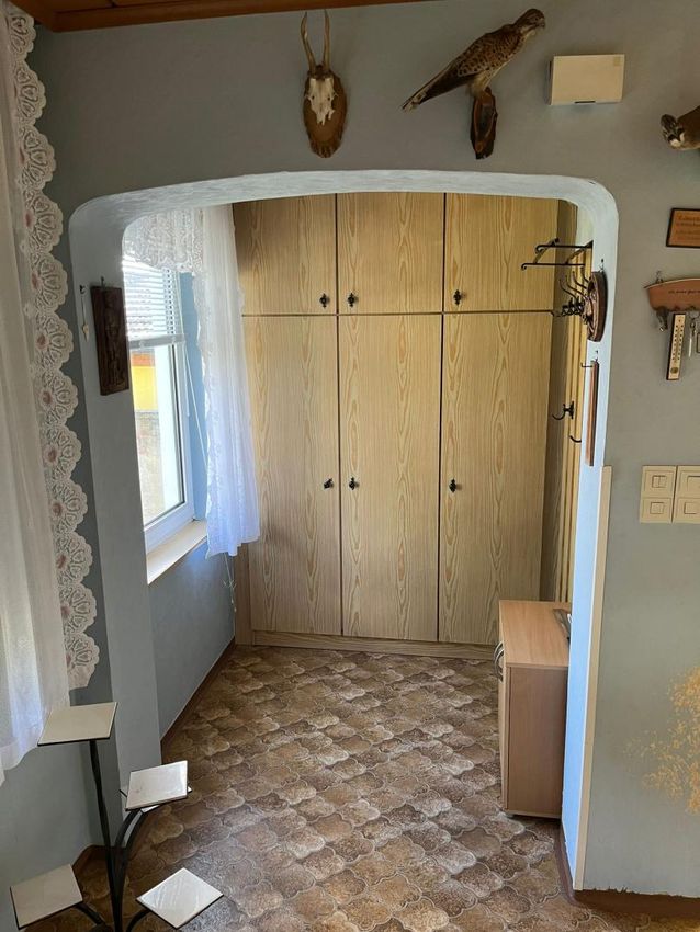 Beim Betreten gelangen Sie in einen großzügigen Vorraum mit Holzdecke und liebevollen Details. Von hier aus führt der Weg ins helle Wohnzimmer mit Wohnwand und Sitzgruppe. Der angrenzende Essbereich mit Eckbank verbindet sich mit der voll ausgestatteten Küche.