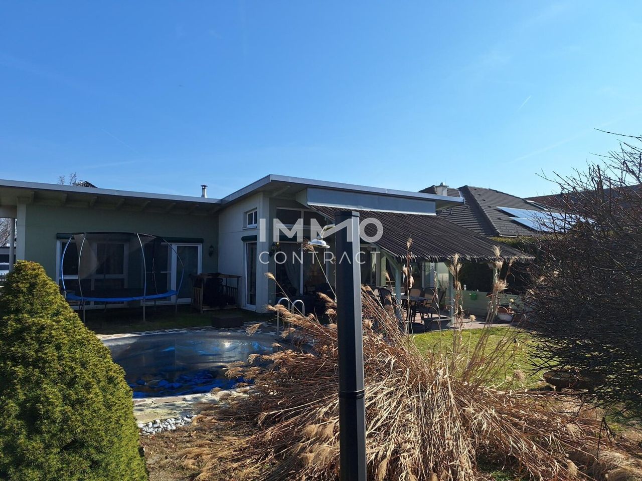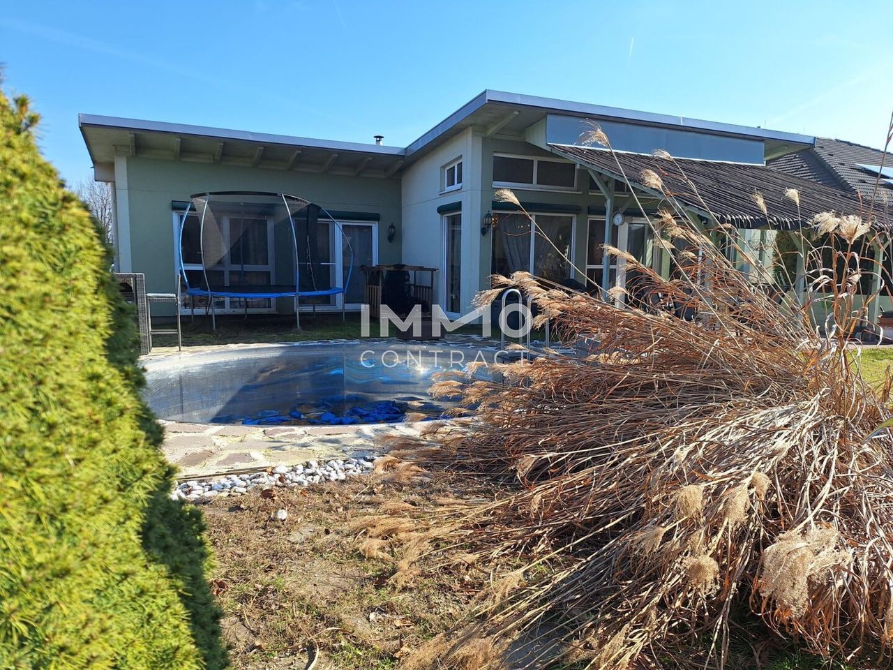 Dieser wunderschöne Bungalow in Raasdorf bietet eine Kombination aus modernem Komfort, Nachhaltigkeit und großzügigem Raumangebot. Besonders hervorzuheben sind die lichtdurchfluteten Räume, die fast autarke Energieversorgung und die Möglichkeit zur Installation einer Photovoltaikanlage. Der Garten mit Sauna und Swimmingpool lädt zum Verweilen und Entspannen ein, während die Nähe zu Raasdorf und guter Verkehrsanbindung das Haus zu einem idealen Wohnort machen.