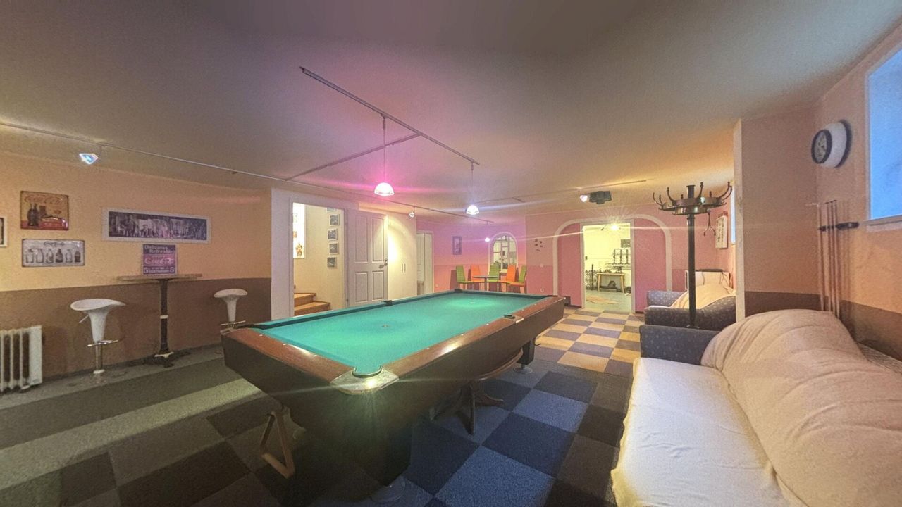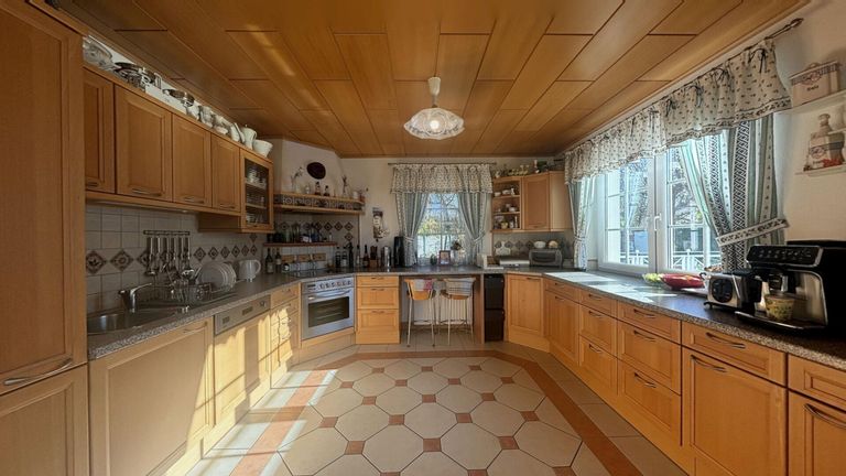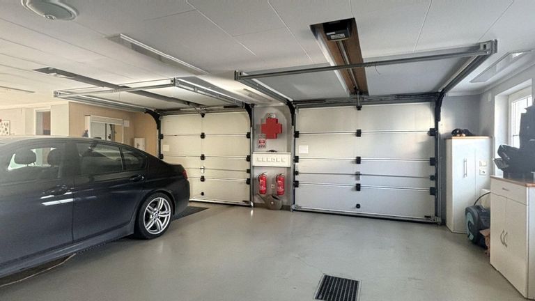 Ein geräumiger Vorplatz ermöglicht die Einfahrt auf zwei Garagenplätze. In das Haus gelangt man über einen Vorraum. Danach öffnet sich das große, sonnendurchflutete Wohnzimmer mit einer offenen Küche. In der tischlerangefertigten Küche mit Blick in den Garten findet man sämtliche Marken-Küchengeräte. Das helle Wohnzimmer besticht durch Glasfronten, die mit außenliegenden Sonnenschutz mit Lichtsensor und Windrad ausgestattet sind. Weiters befinden sich im Erdgeschoß ein Schlafzimmer, ein Badezimmer mit Wanne und Waschmaschinenanschluss sowie ein Gäste-WC. Im Obergeschoß befinden sich zwei weitere Schlafzimmer, ein Arbeitsraum, ein Abstellraum als auch ein Bad mit Dusche und Waschmaschinenanschluss, alle Räume sind zentral begehbar. Im Keller finden Sie einen großen Party-Raum, von dem aus ein weiteres Schlafzimmer, ein Fitnessraum, ein Abstellraum und insgesamt drei Technik- bzw. Werkstättenräume zu erreichen sind.