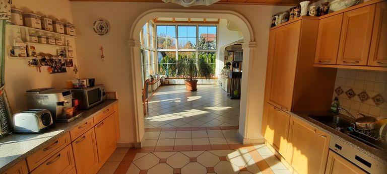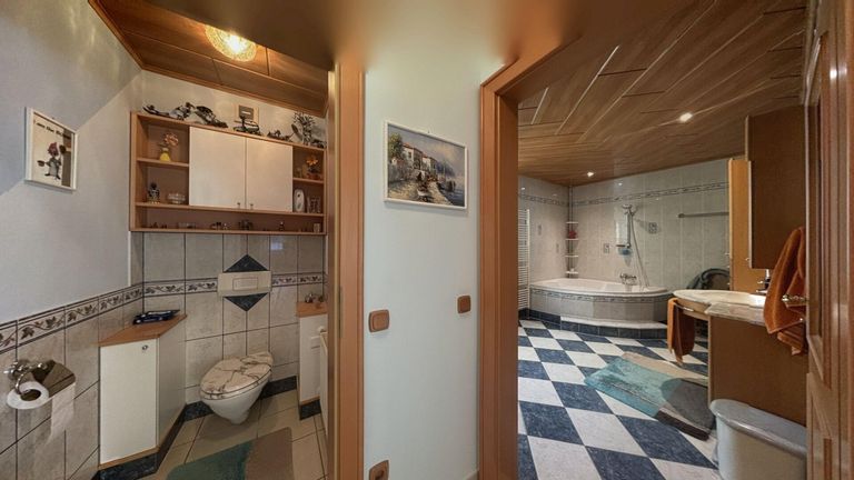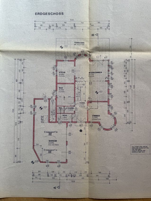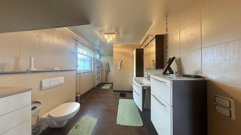 - die im Erd- und Obergeschoß befindliche Fußbodenheizung, ergänzt durch teilweise Radiatoren bzw. Radiatoren für Keller und Garage