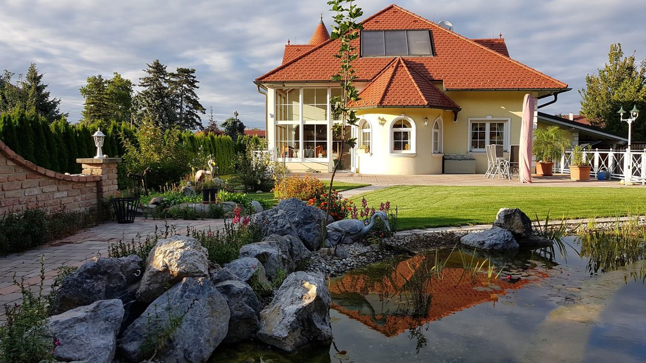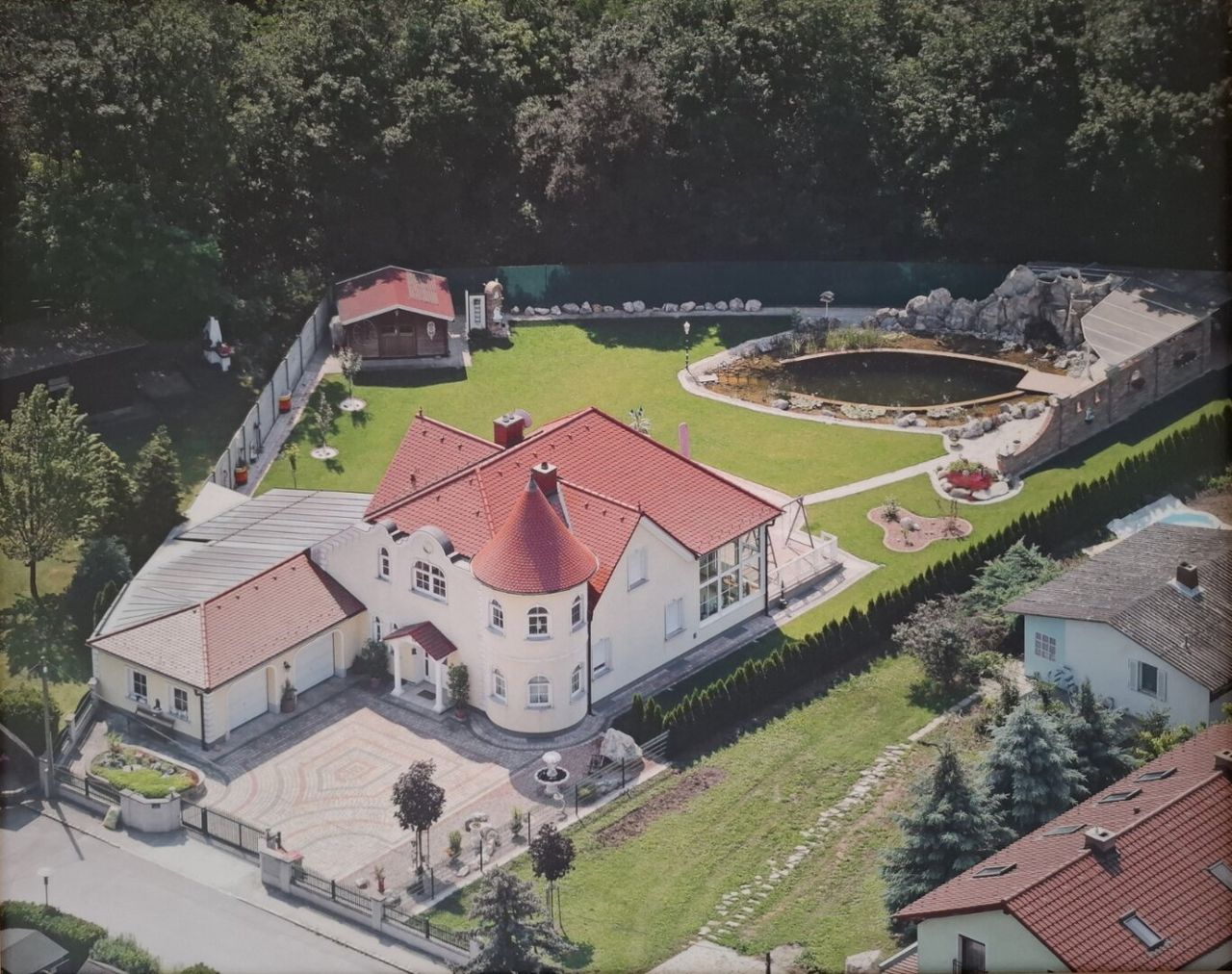 Auch sämtliche Garten- bzw. Außeneinrichtungen wurden bis ins letzte Detail durchdacht, wie zum Beispiel Stromversorgung bis zum Gartenhaus, inklusive Starkstromanschluss, eine Vielzahl von Beleuchtungskörpern und Stromanschlüssen bei Blumen- und Bauminselbeeten. Sitz- und Grillplatz wurden mit aufwendiger Ziegelwand und Überdachung versehen. Ein unter dem Rasen eingegrabenes Maulwurfnetz sorgt für das Fernbleiben unerwünschter "Gäste" im Garten.