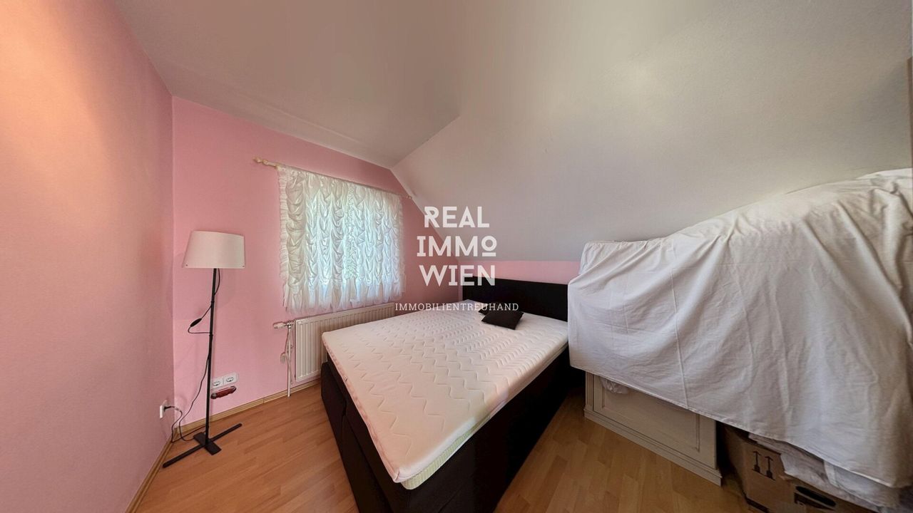 Dieses Einfamilienhaus befindet sich auf einem Grundstück von rund 619 m² und verfügt über eine Wohnfläche von ca. 128,01 m², die sich auf zwei Ebenen, mit fünf Zimmer verteilt. Das Erdgeschoss umfasst Küche, Vorzimmer, Schlafzimmer, Vorraum und WC. Zusätzlich gehören eine Loggia mit ca. 6,78 m², eine Terrasse, ein großzügiger Vollbetonkeller mit ca.75,27 m² sowie eine Garage mit ca. 96 m² zum Haus. Im Dachgeschoss befinden...