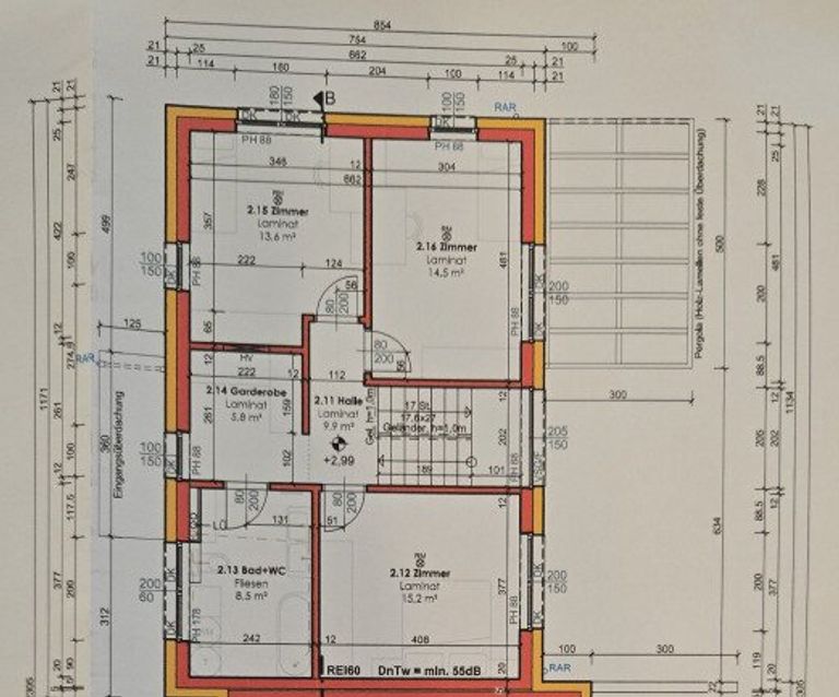 - Doppelhaushälfte mit rund 132 m² Wohnnutzfläche bestehend im Erdgeschoß aus: Vorraum, Bad mit WC, Wohnküche, Büro, Technikraum im Obergeschoß aus: Vorraum, 3 Zimmer, Schrankraum, Badezimmer mit WC rund 318 m² Grundstücksfläche