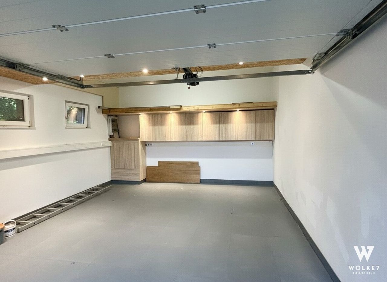 Garage mit Garagentor, Wallbox Anschluss und direktem Zugang zum Garten