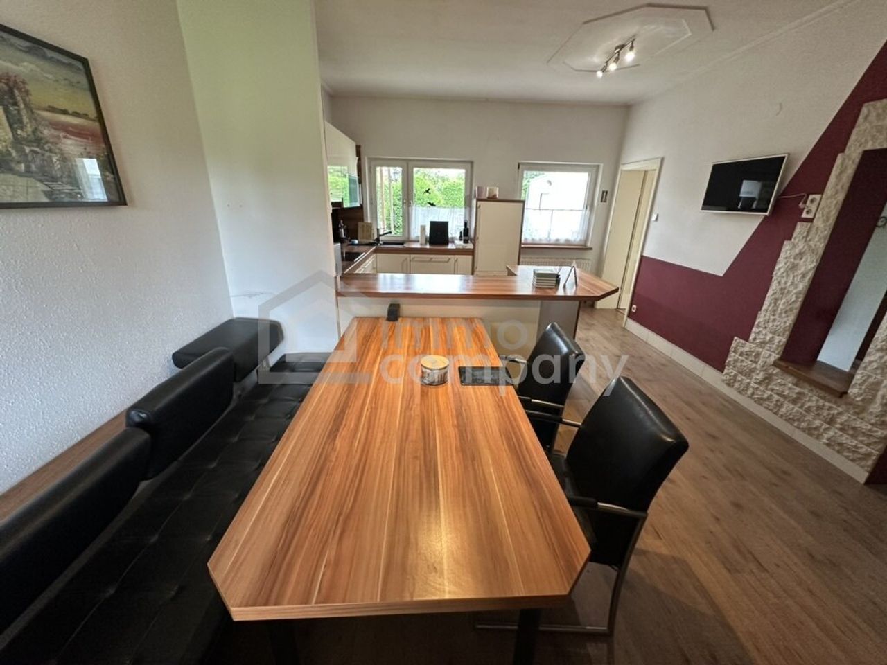 Die offene Wohnküche lädt zum Verweilen und gemeinsamen Kochen ein. Sie ist der perfekte Ort, um gesellige Abende mit Freunden zu verbringen oder die Familie um den Esstisch zu versammeln und verleiht ein angenehmes Wohnambiente.