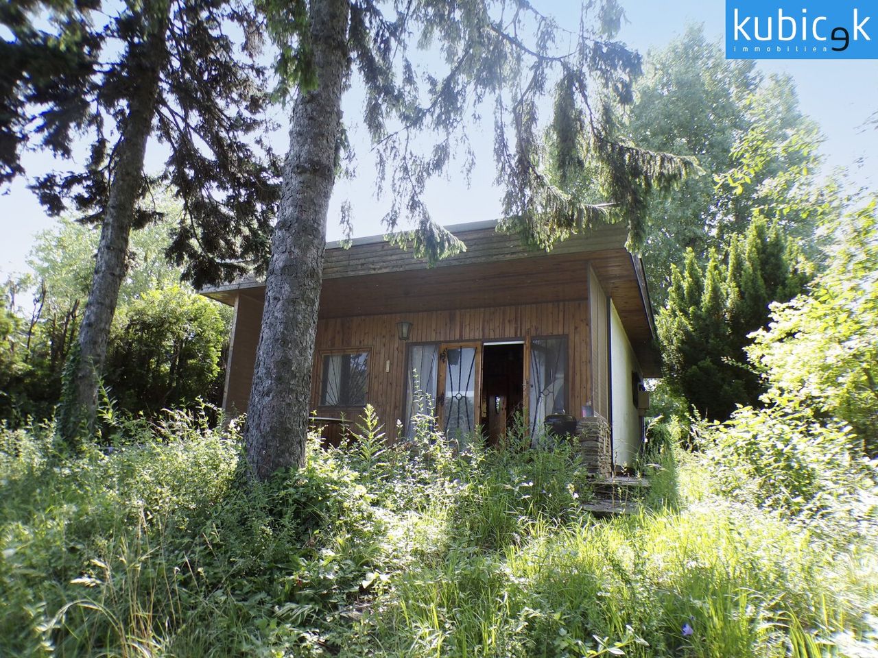Das Holzhäuschen mit direktem Wasserzugang befindet sich auf einer angelegten Badeparzelle am Donau-Oder-Kanal und wartet darauf, aus seinem Dornröschenschlaf geweckt zu werden.